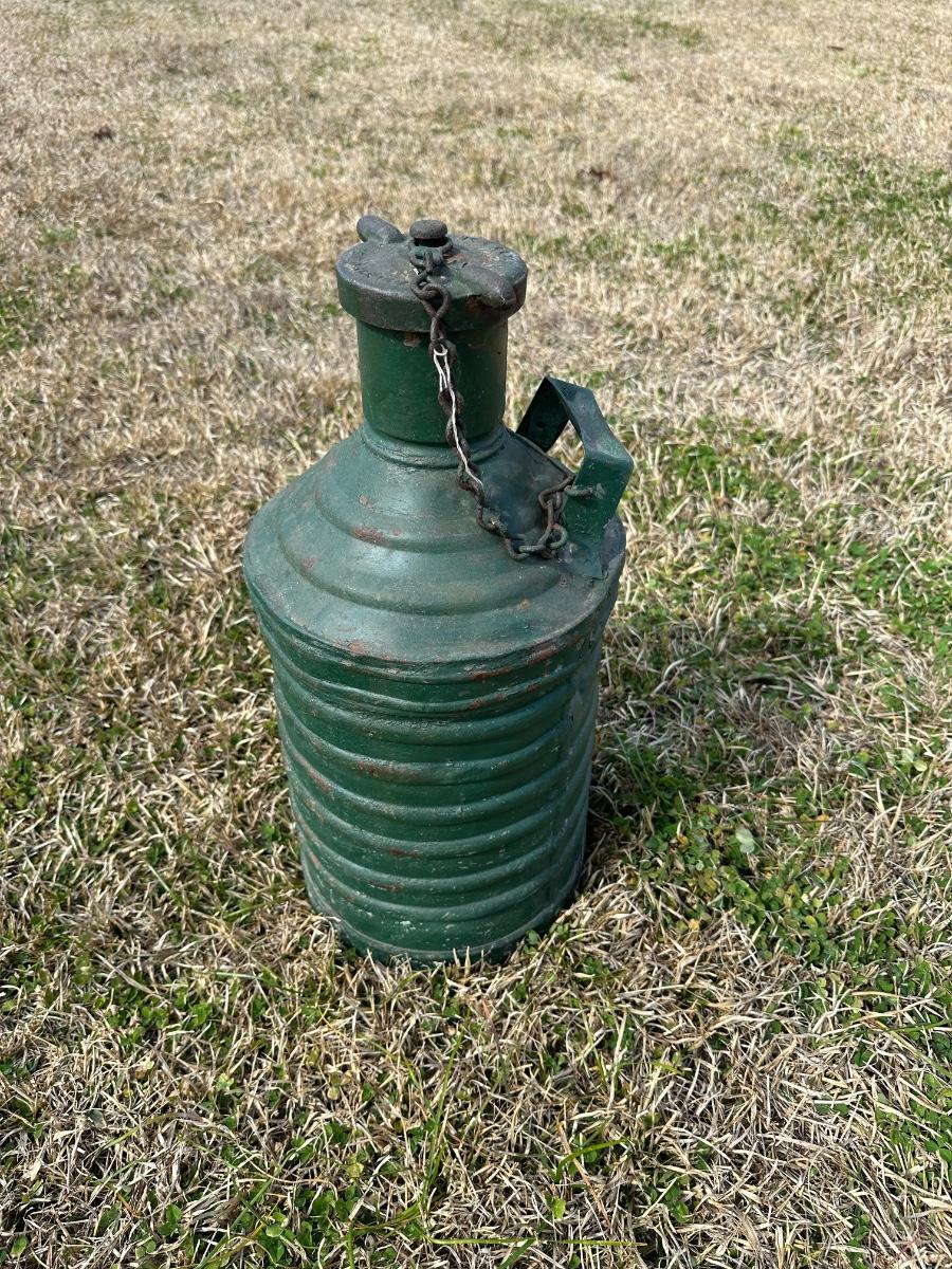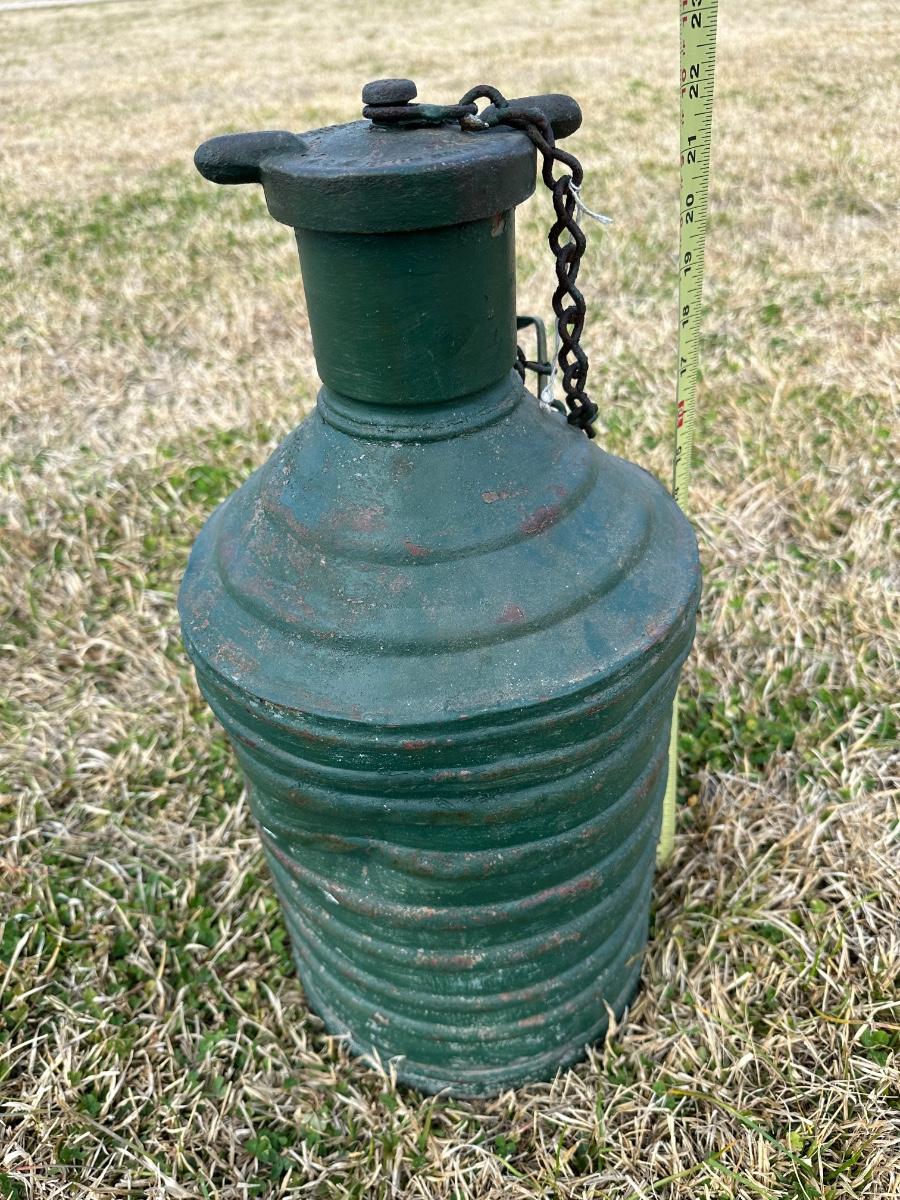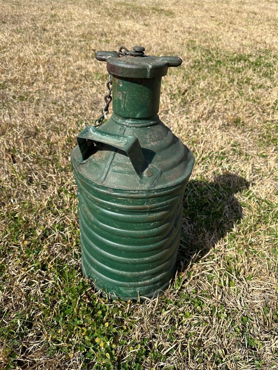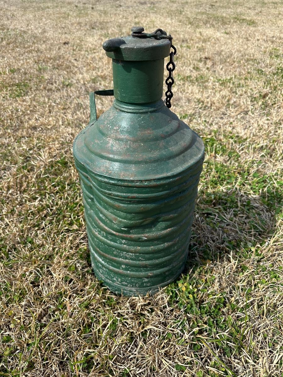 Vintage heavy metal dairy/milk can with locking lid and chain, marked “NEW ORLEANS” on the cast cap (see photos). These cans were traditionally used for storage/transport of milk from farm to dairy/processing and delivery routes—New Orleans had an active dairy and milk-delivery history in the early 1900s and beyond.