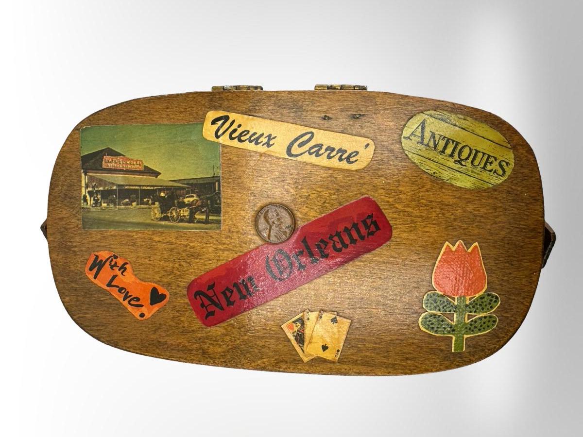 Vintage New Orleans Hand-Painted and Decorated Basket