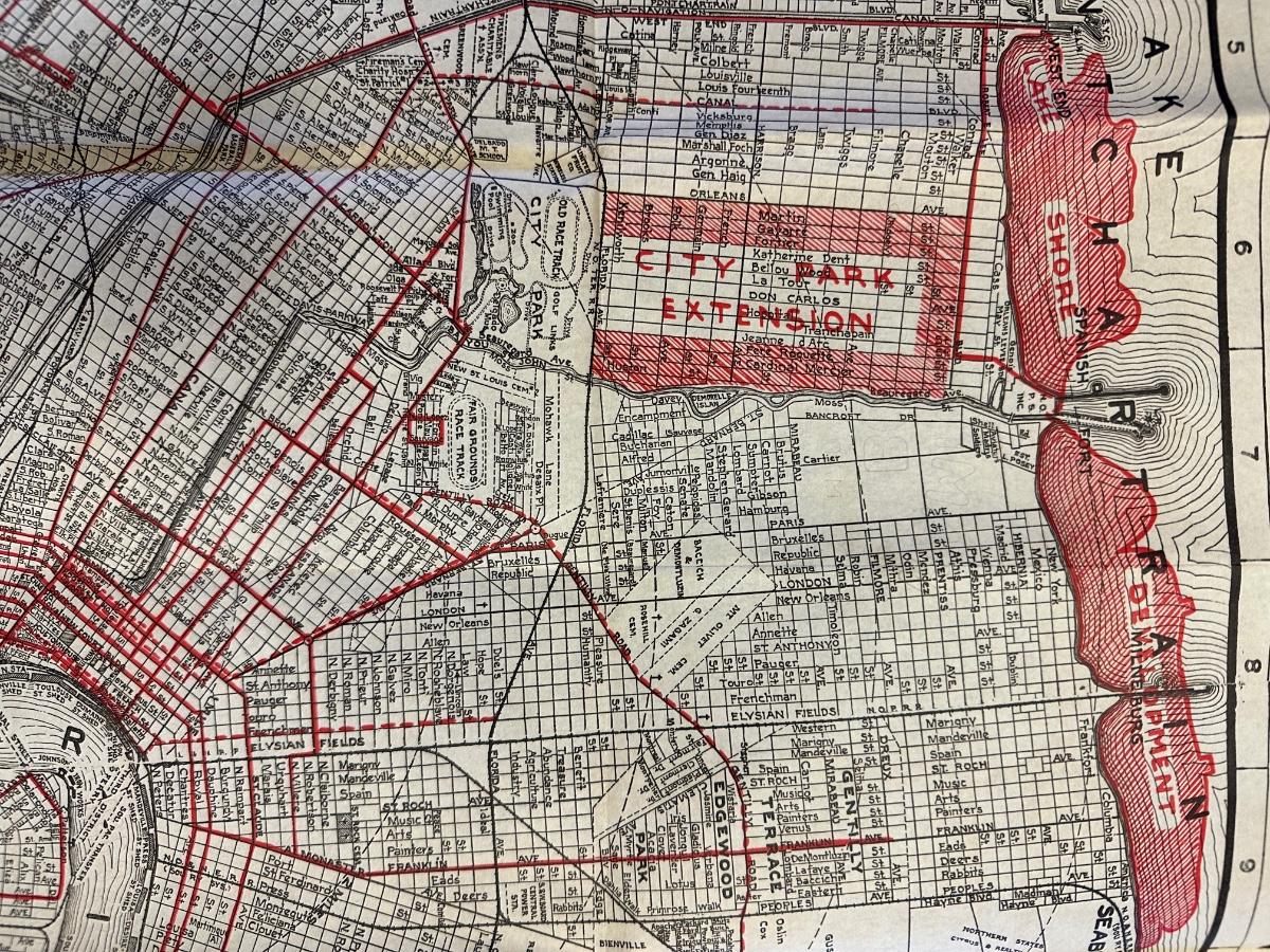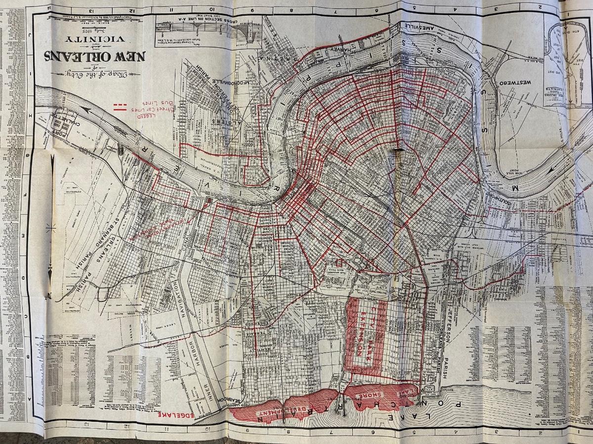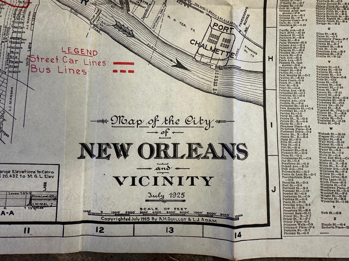 Map of the City of New Orleans and Vicinity. Published by A.H. Guillott and L. J. Adam, 1925