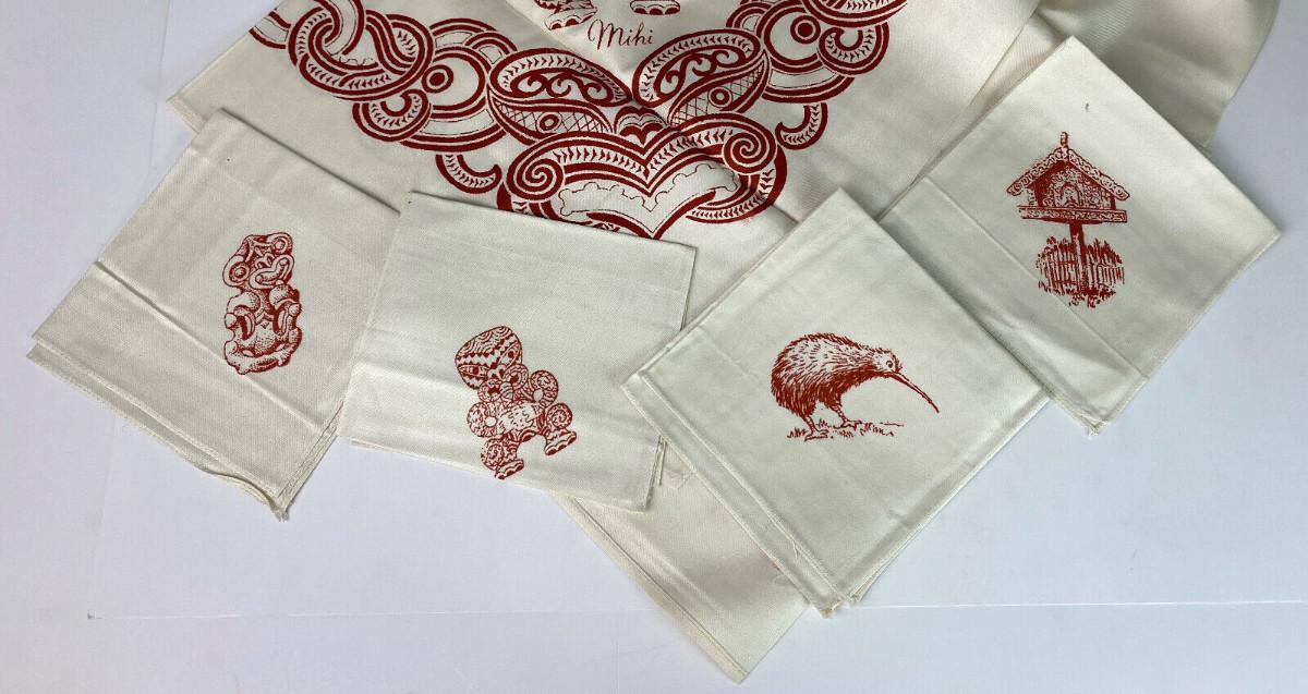 vintage NEW ZEALAND MAORI PACIFIC ISLAND ART LINEN TABLECLOTH & NAPKINS
