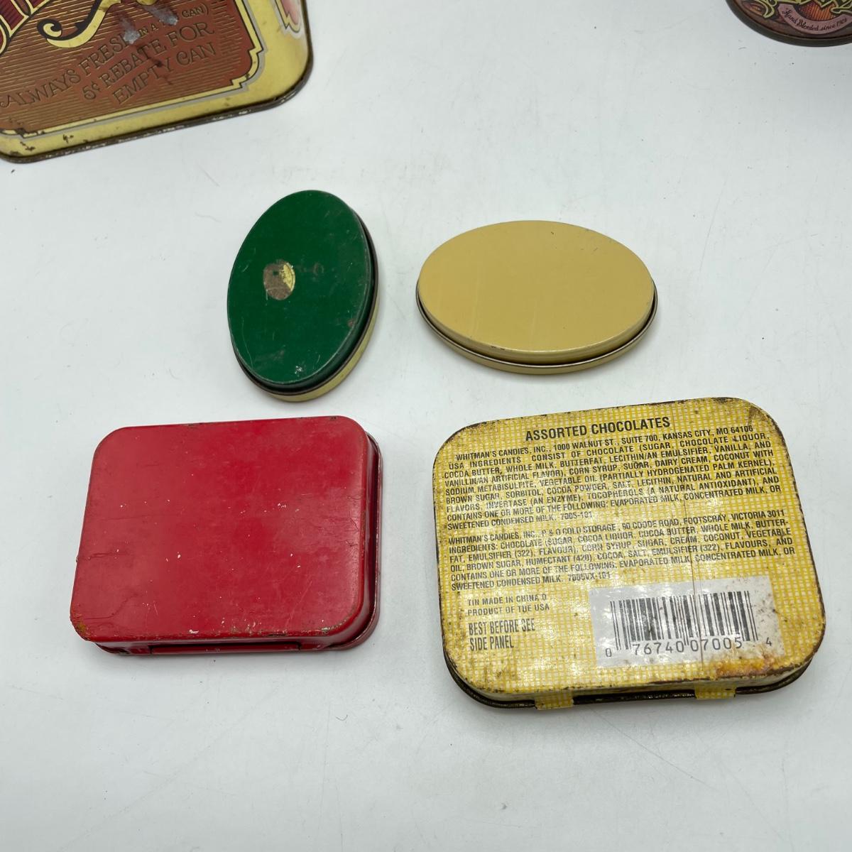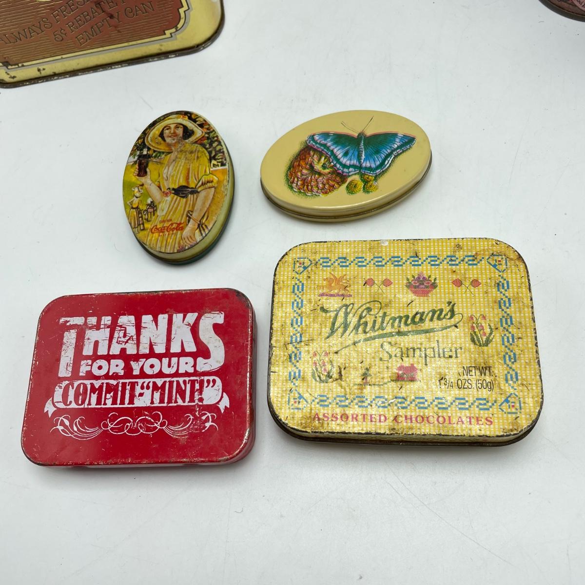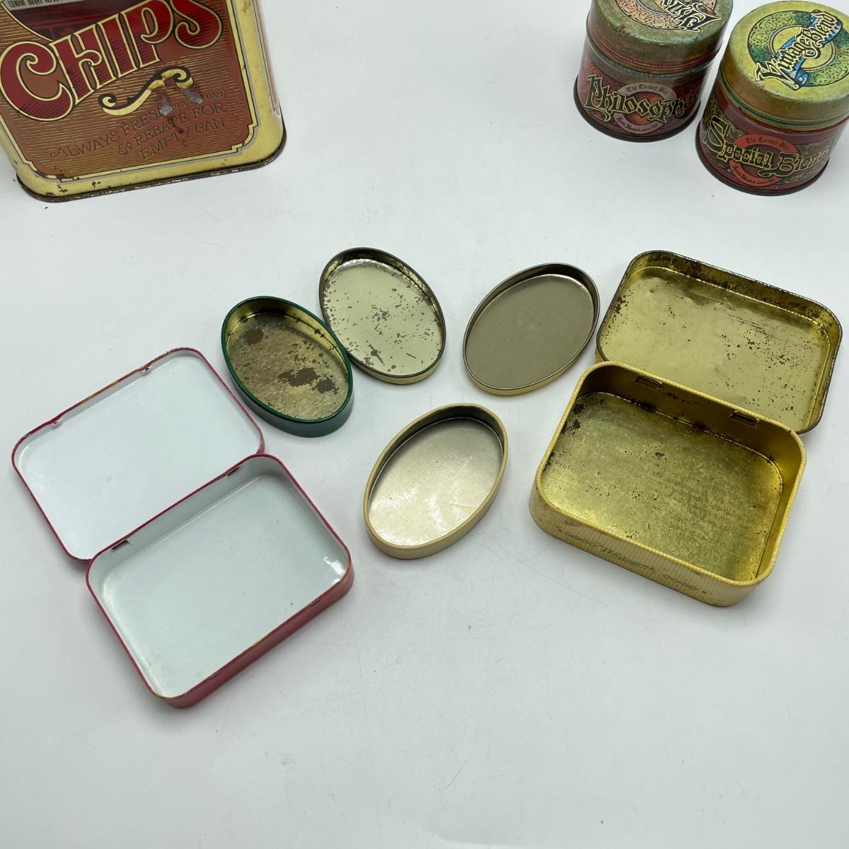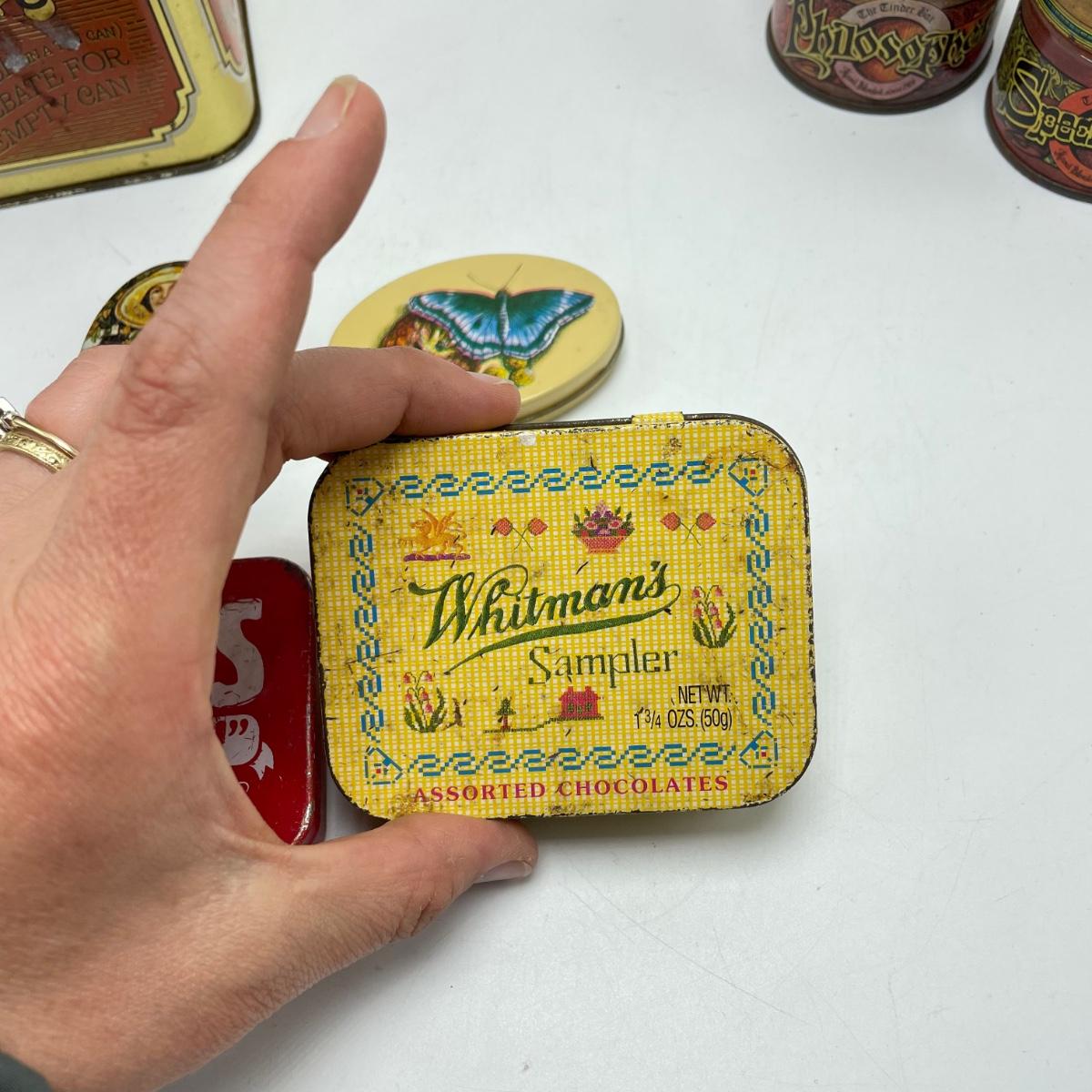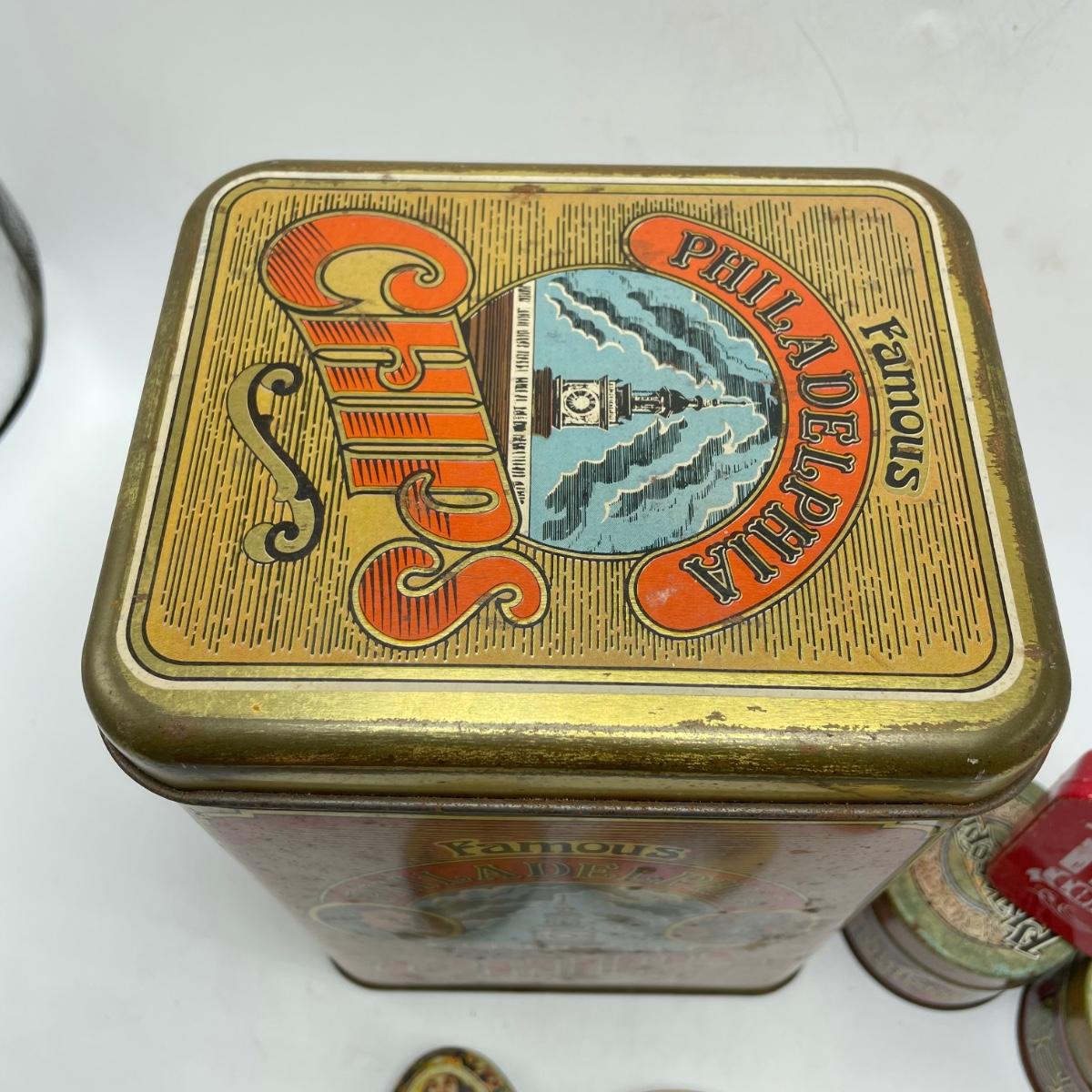 Seven advertisement tins, some newer, some vintage. The Philadelphia Chips tin held a 20 year 1966-1986 metal calendar that’s just over 2” wide. See images. Shipping available.