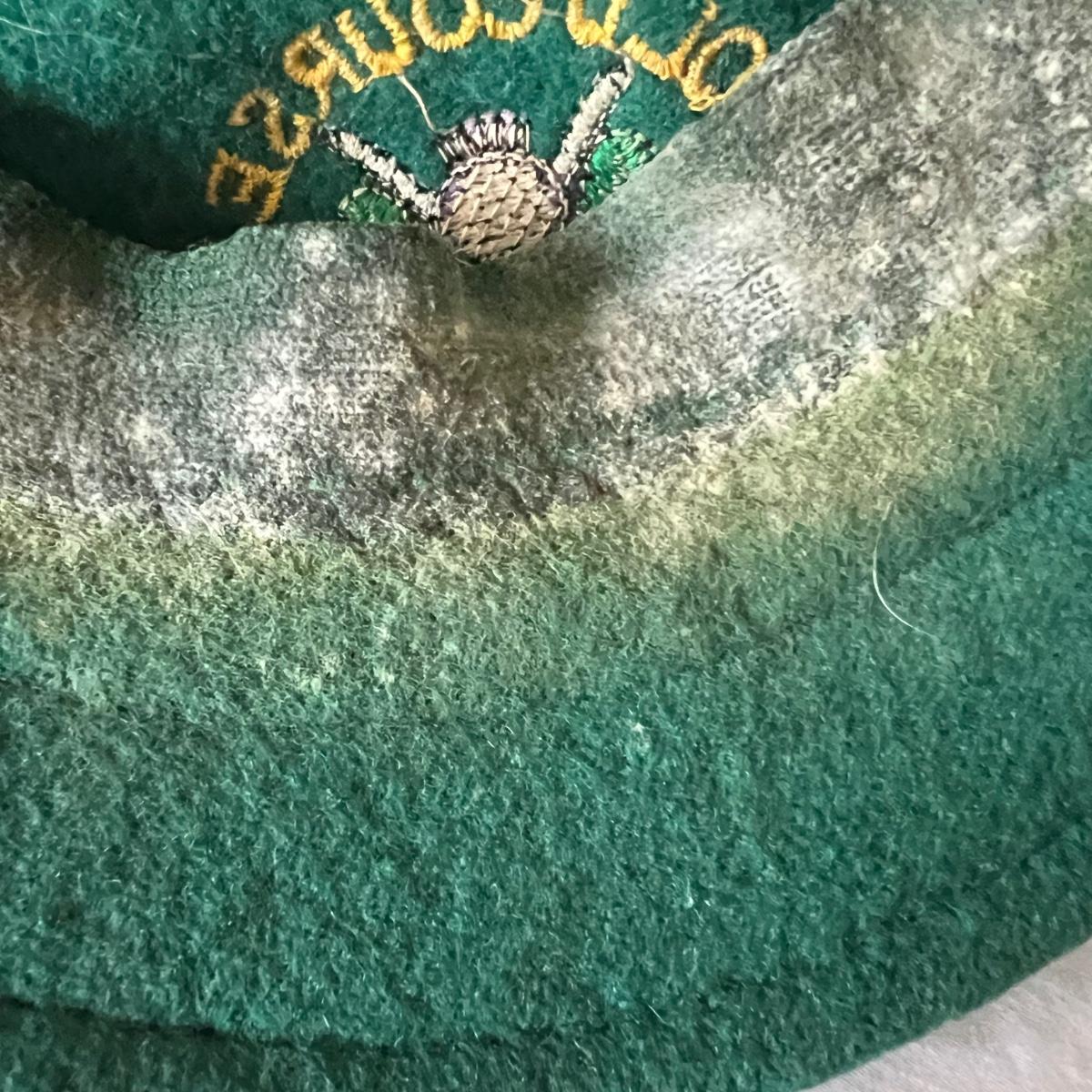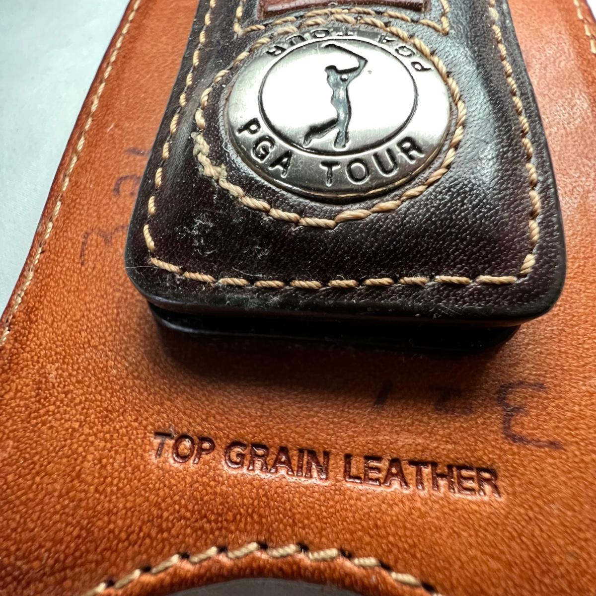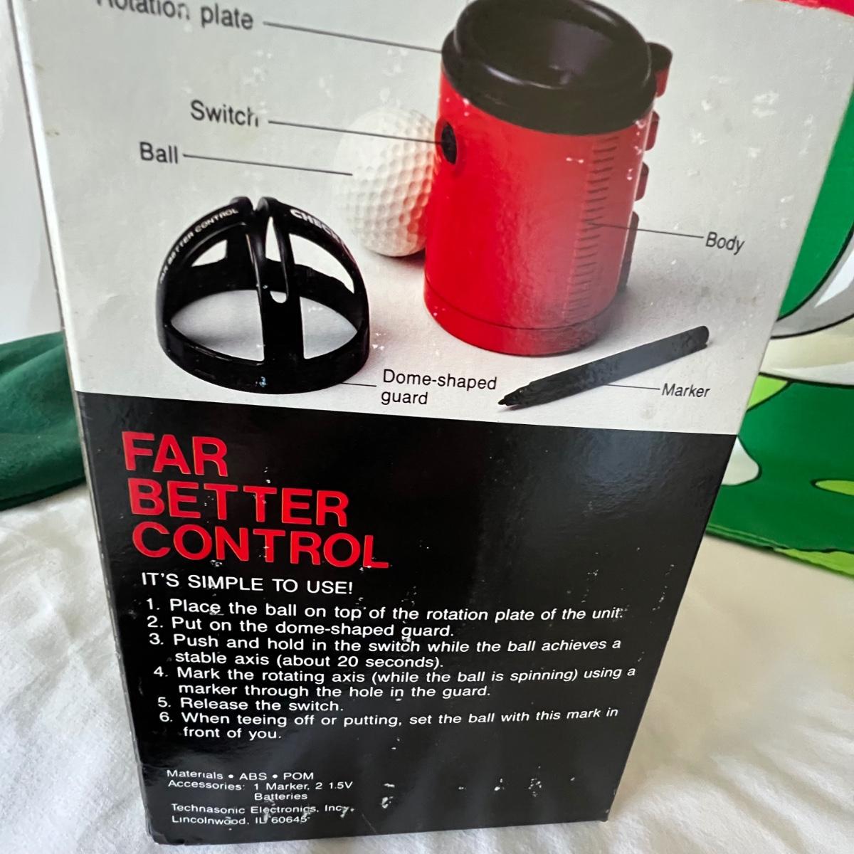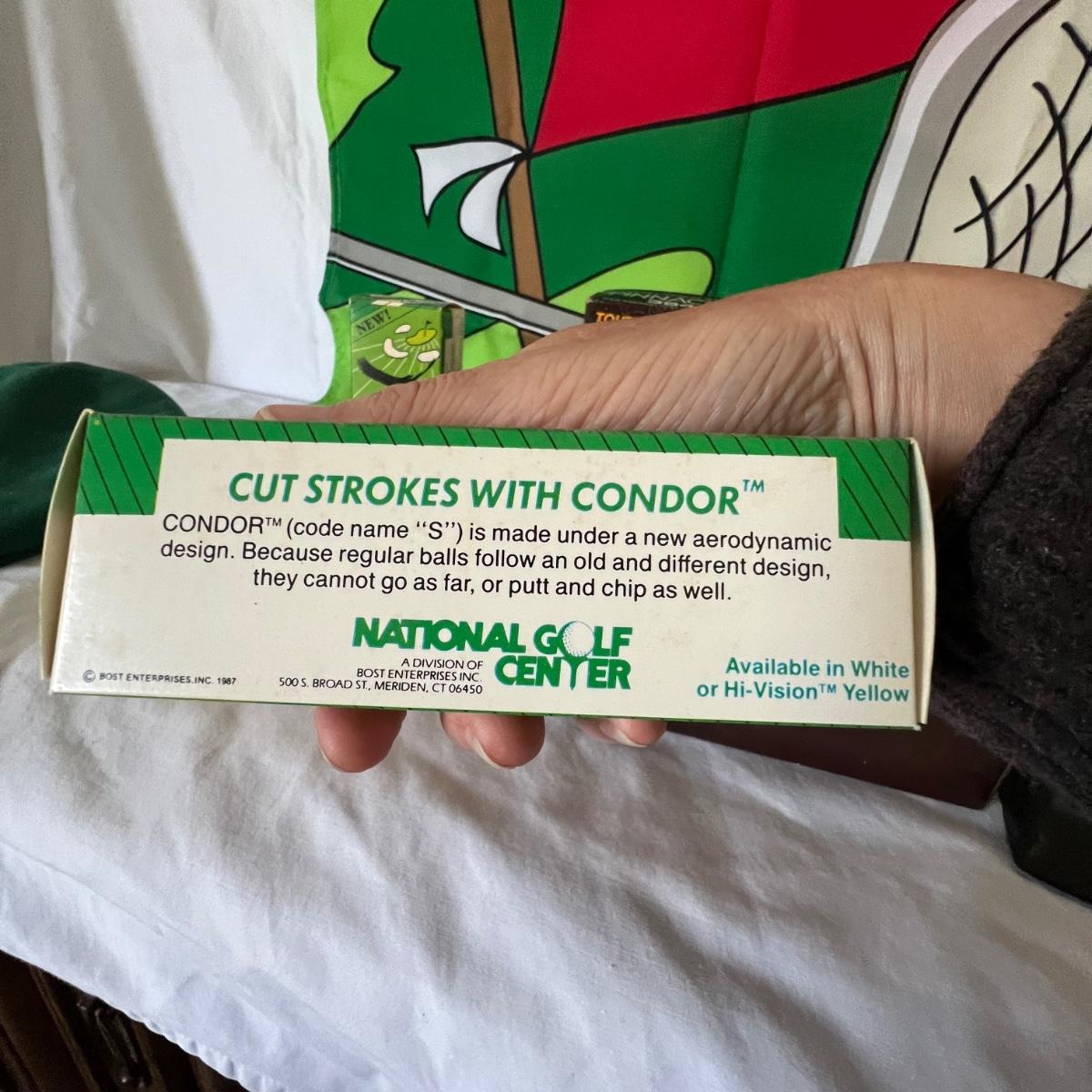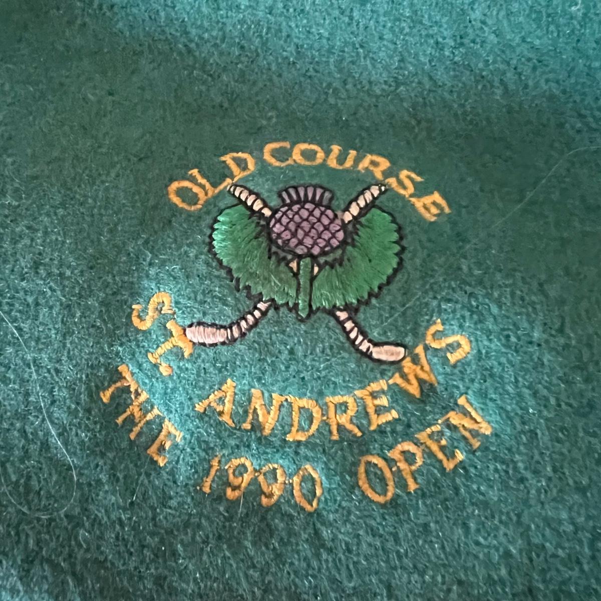 A mix of vintage and newer golf accessories. Includes a green wool Kangol cap (note it is dirty), four Tervis tumblers, a 19th hole flag, books, bag of tees and balls and more. The putting cup was not tested.