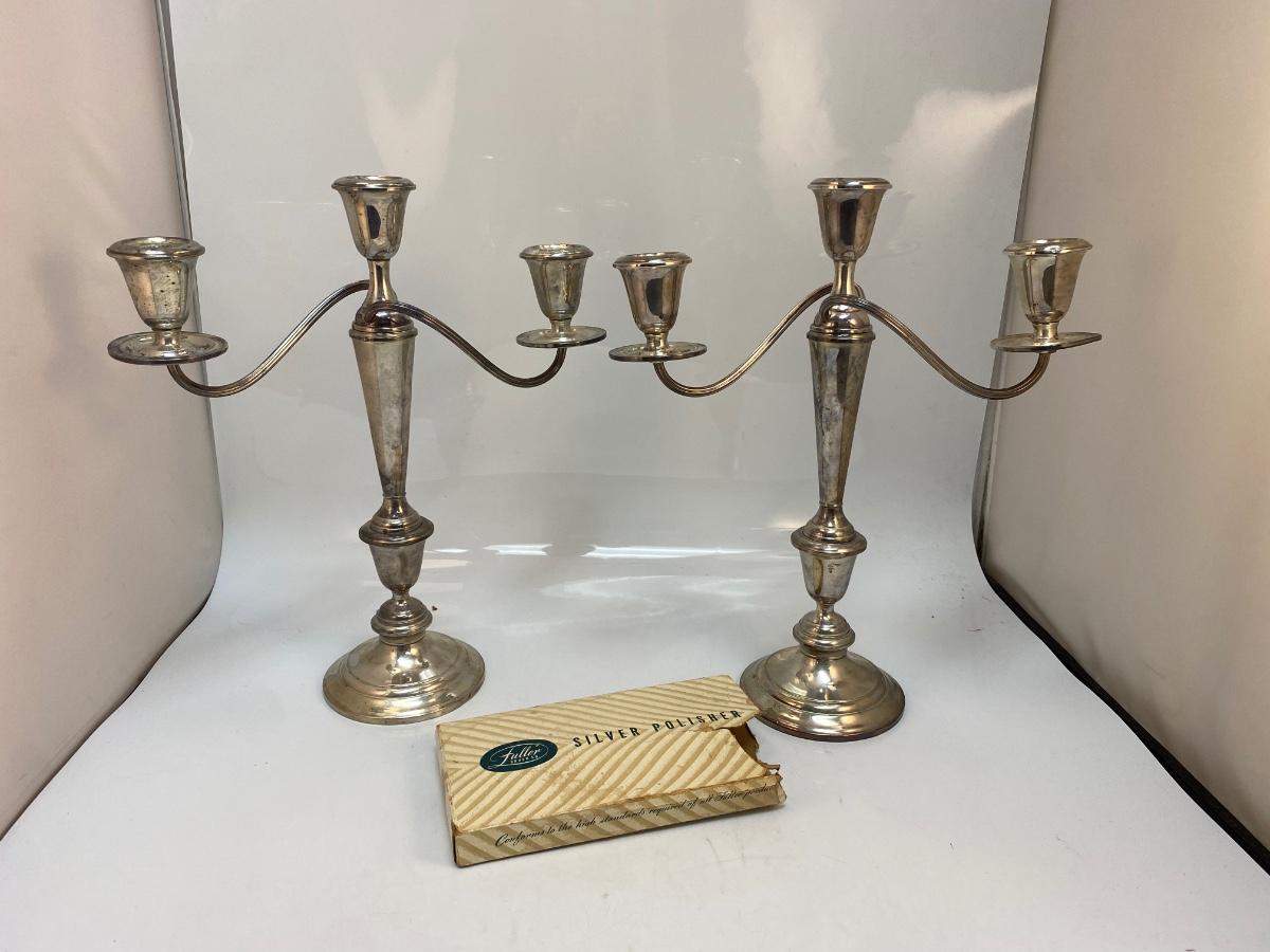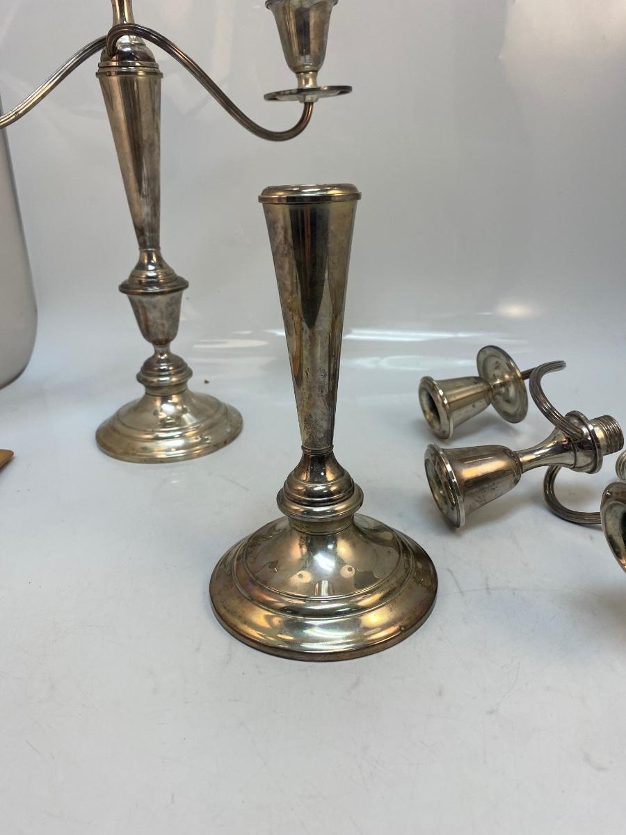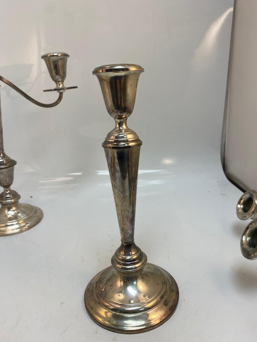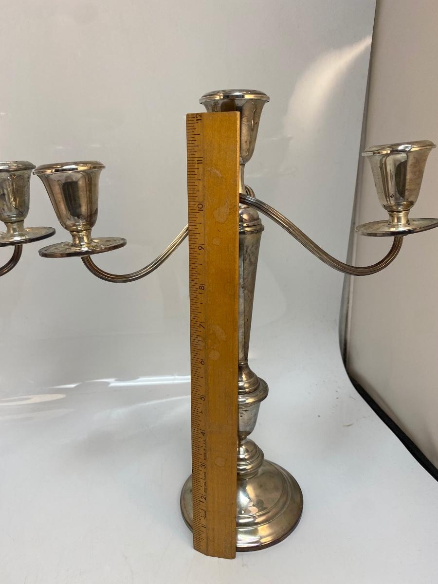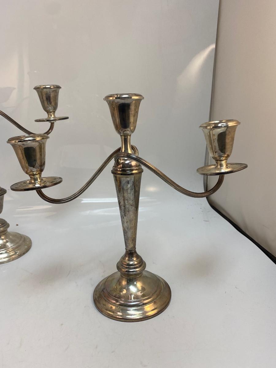 Vintage Newport Sterling Silver Weighted Candle Holder Candelabra Adjustable Design. Each candelabra is made of four separate pieces that can be unscrewed and rearranged to desired height a style. Weighted pieces. In good condition. See photos.
