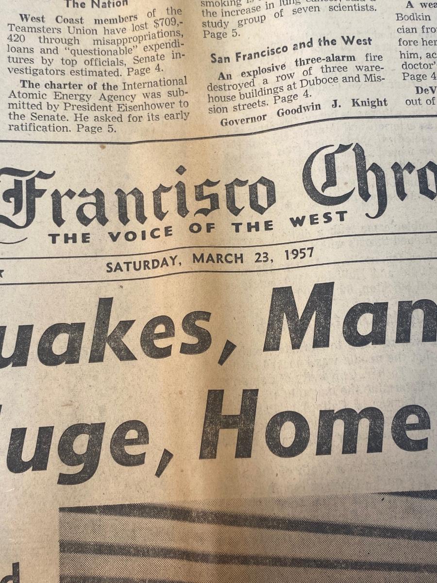 Vintage Newspaper Articles on San Francisco Earthquake March 1957