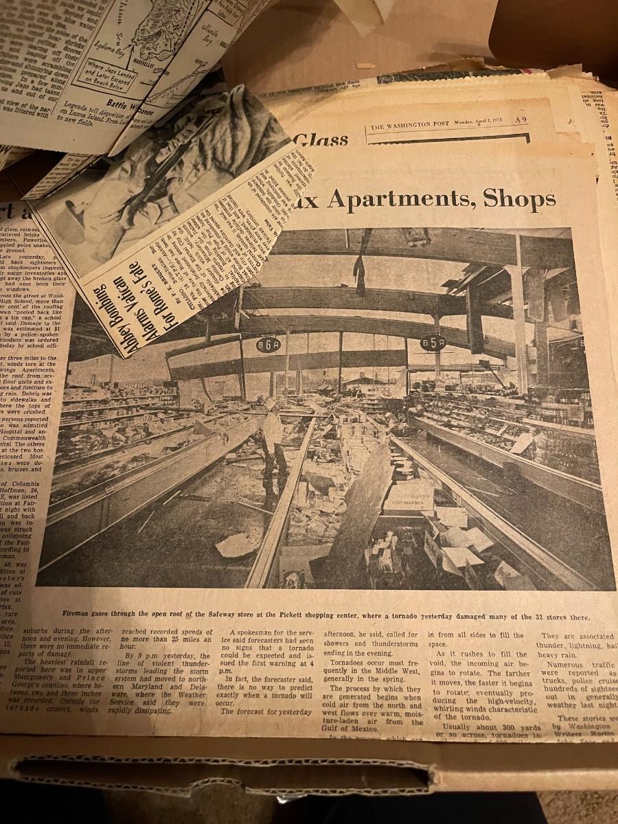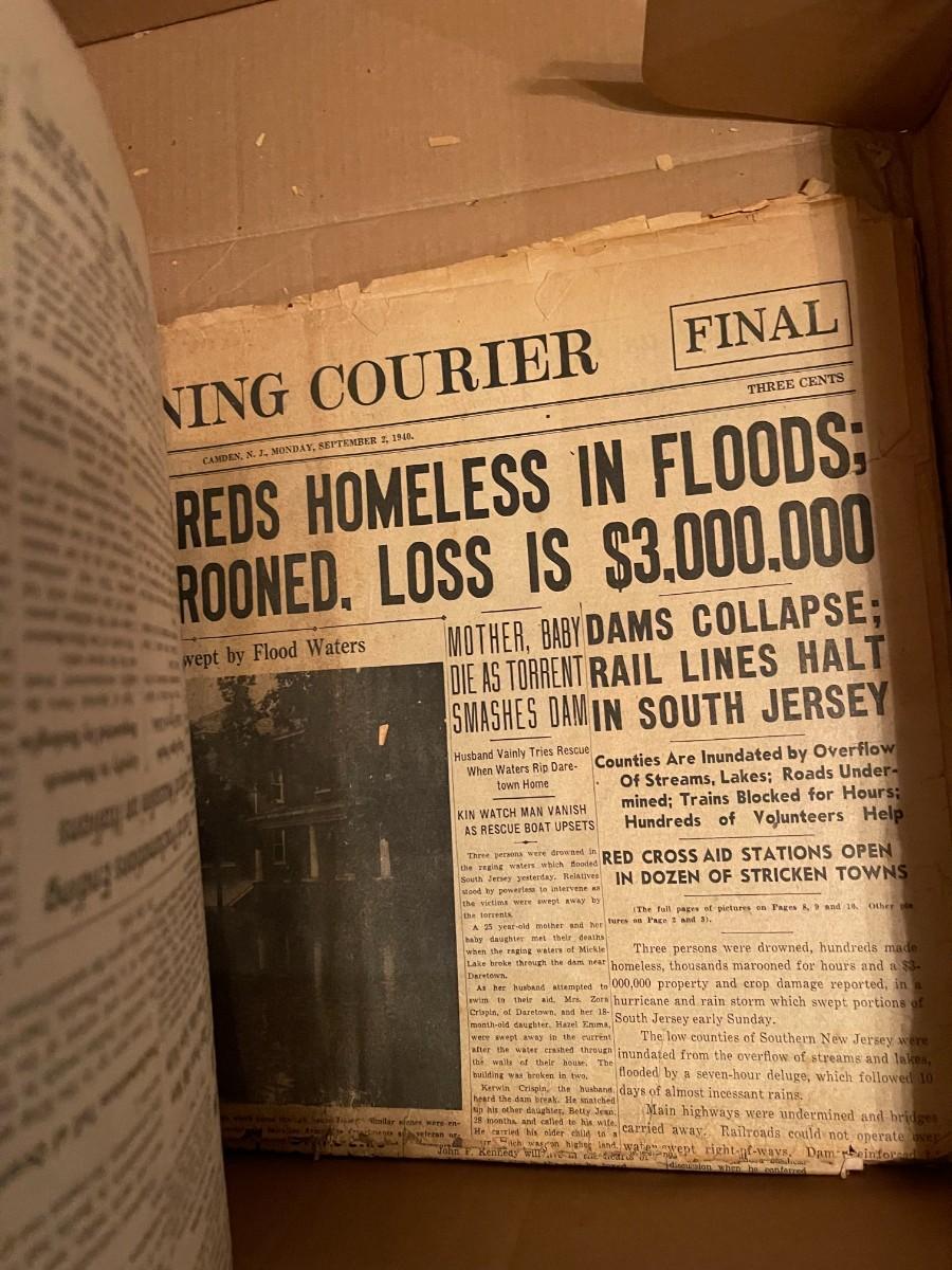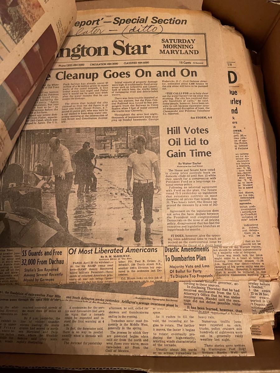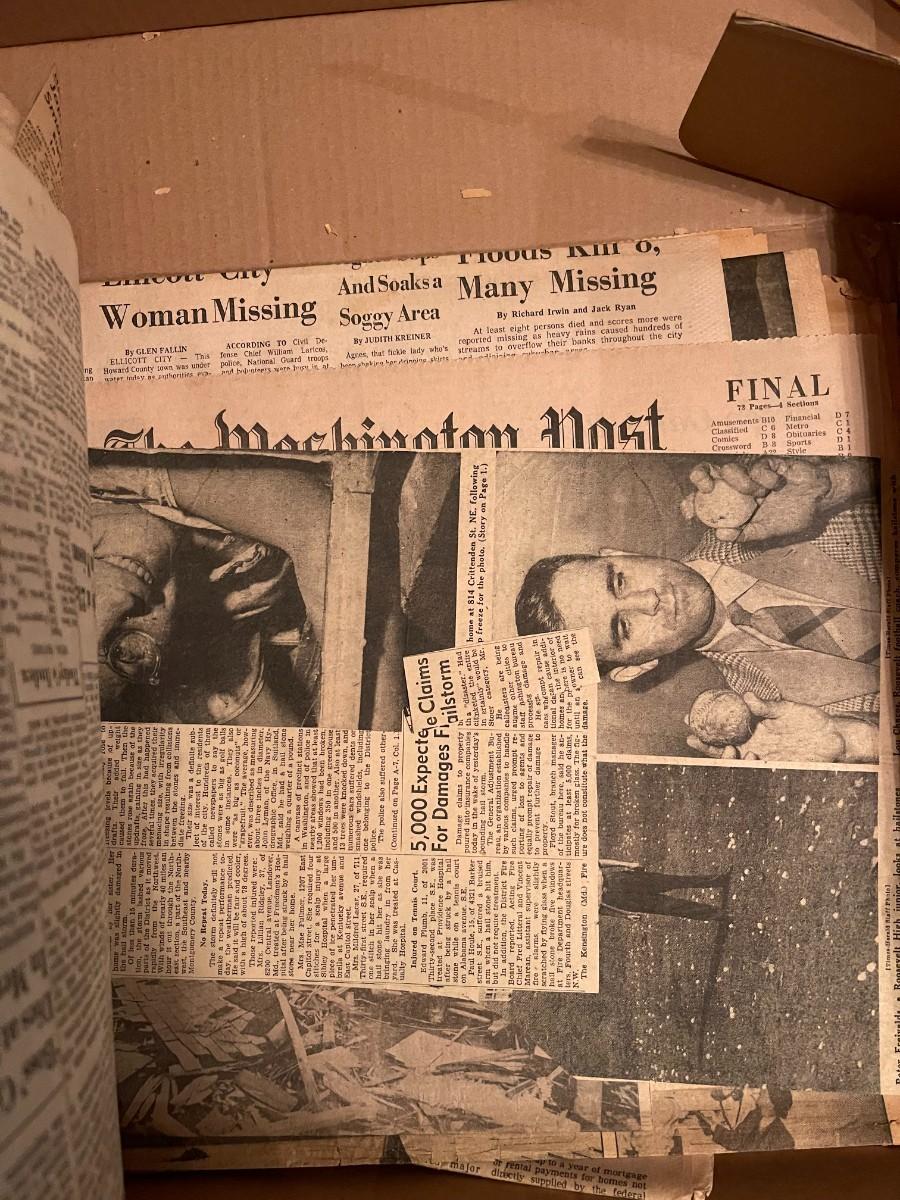 Vintage box of old newspapers 1940s, 1960s, etc.