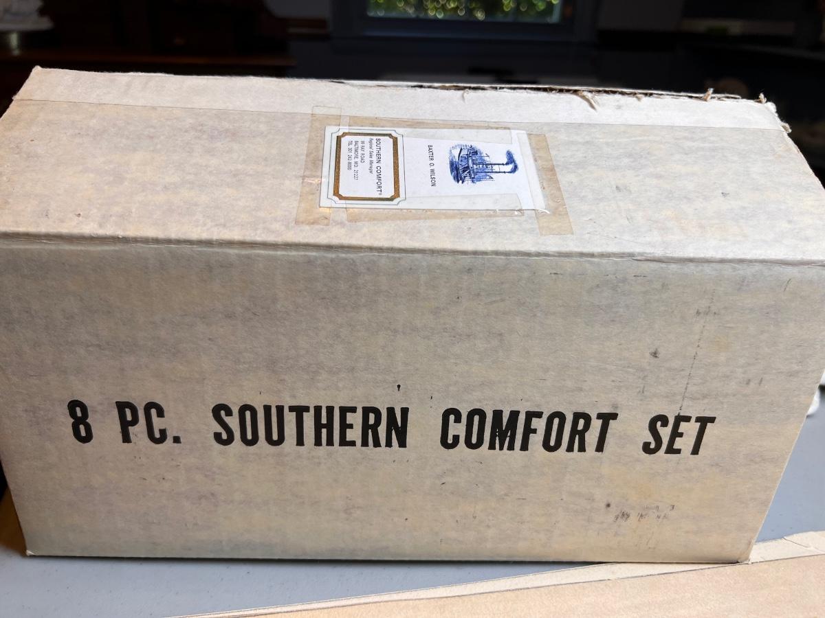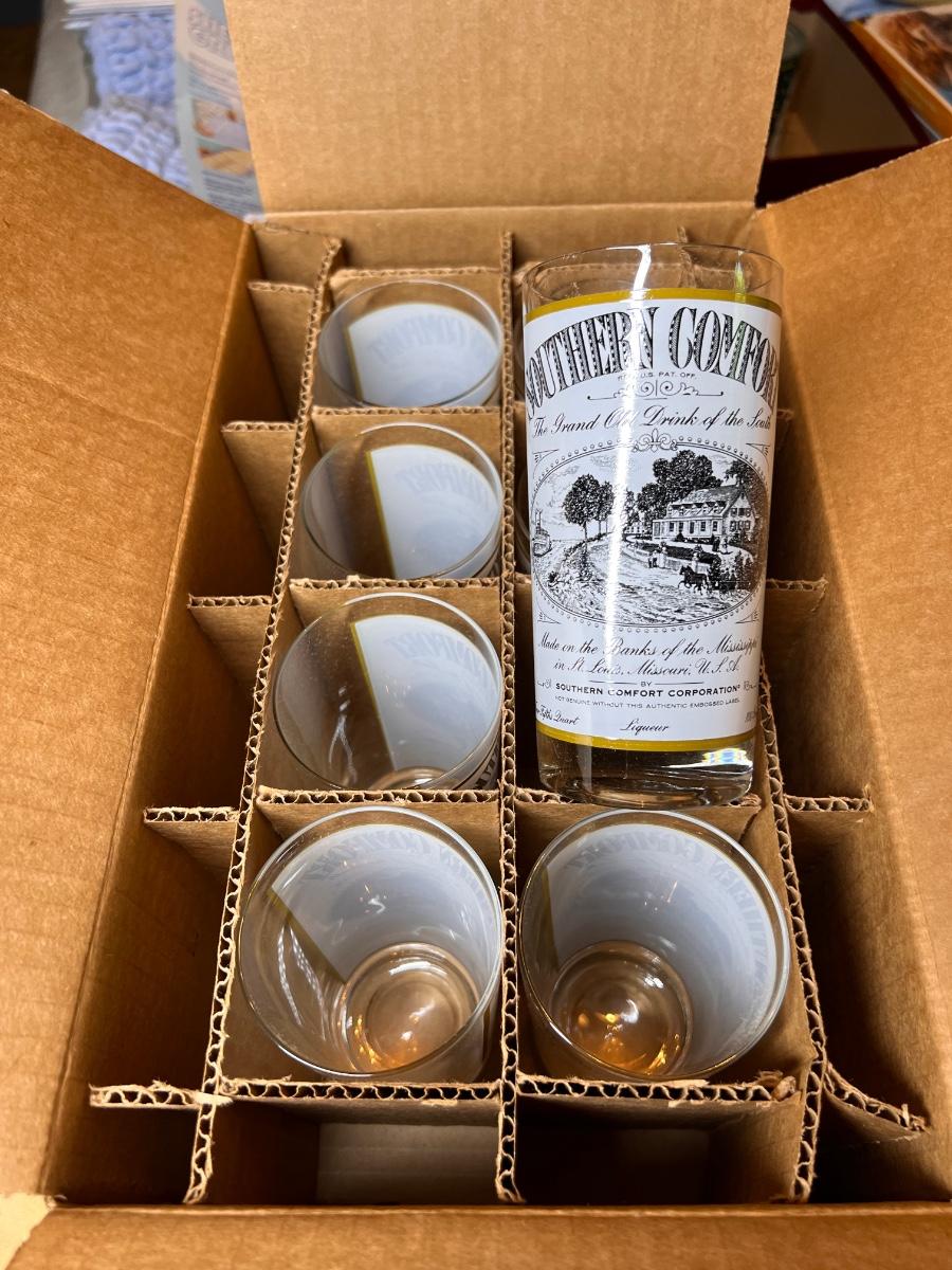 8 tall Southern Comfort "The Grand Old Drink of the South" glass drinkware still in original Southern Comfort shipping box!