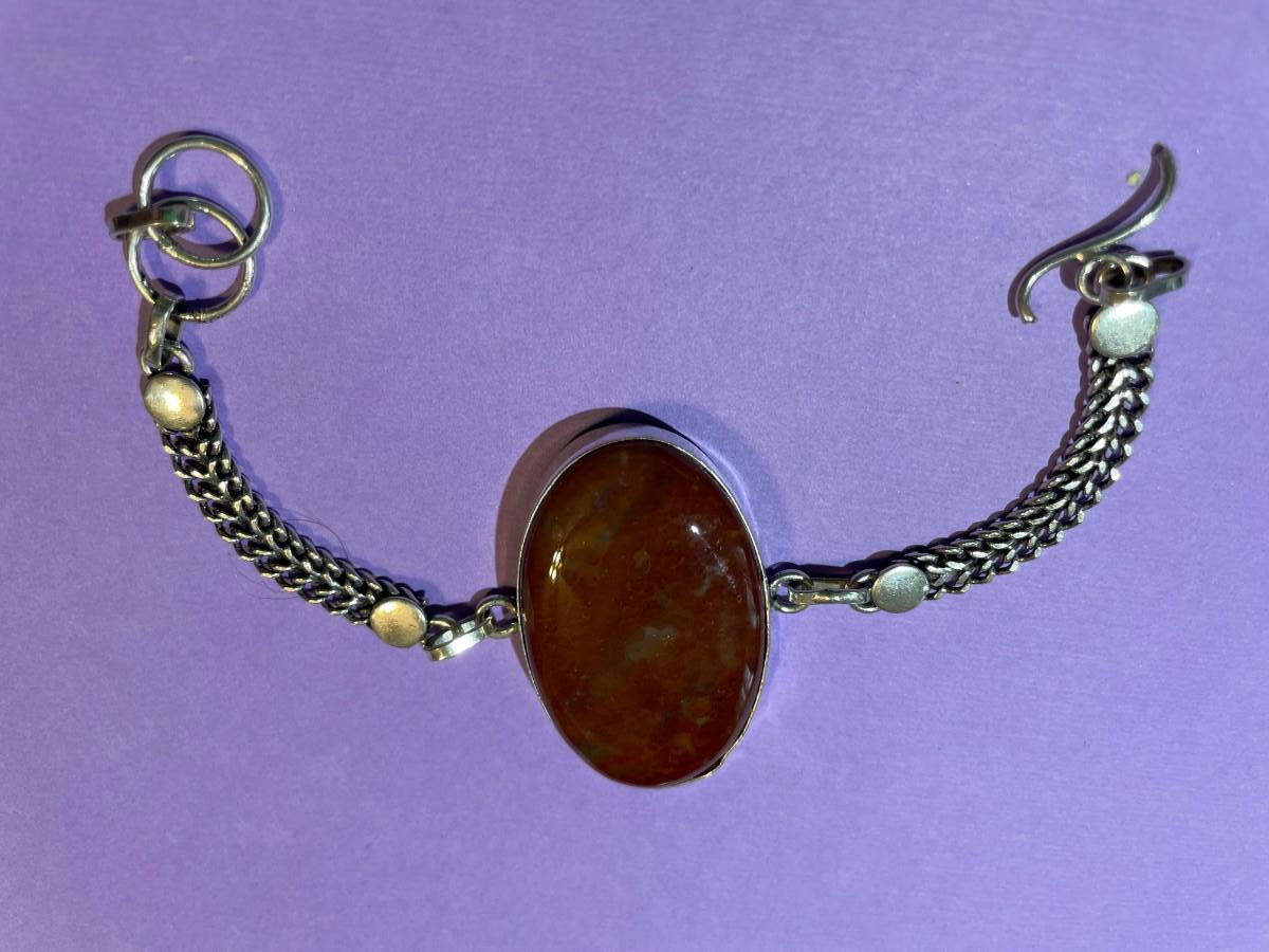 Vintage Nicely Made Carnelian Fashion Sterling Silver Bracelet in Good Preowned Condition.