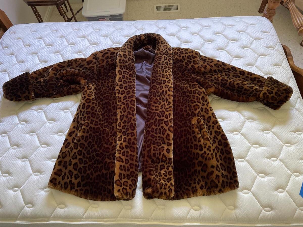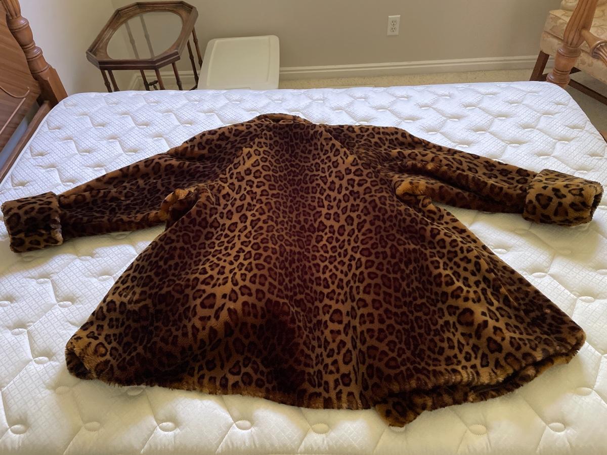 #58 Vintage NIEMAN MARCUS Faux Leopard Fur Swing Coat w/Dolman Sleeves Size M
