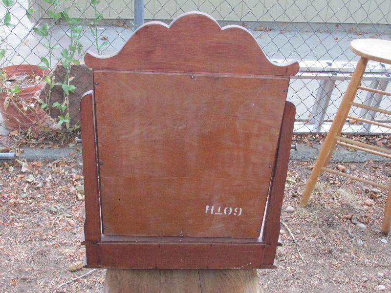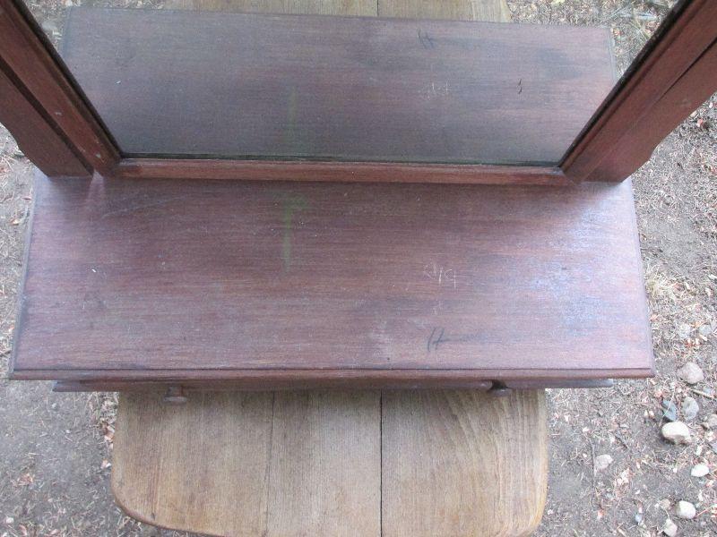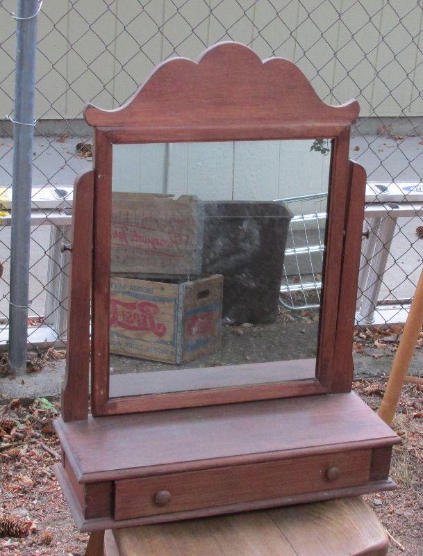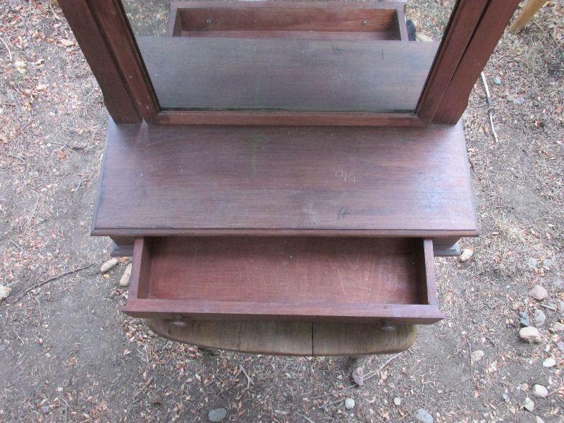 Vintage men's shaving vanity with mirror and single drawer. Has some scratching shown in photos.