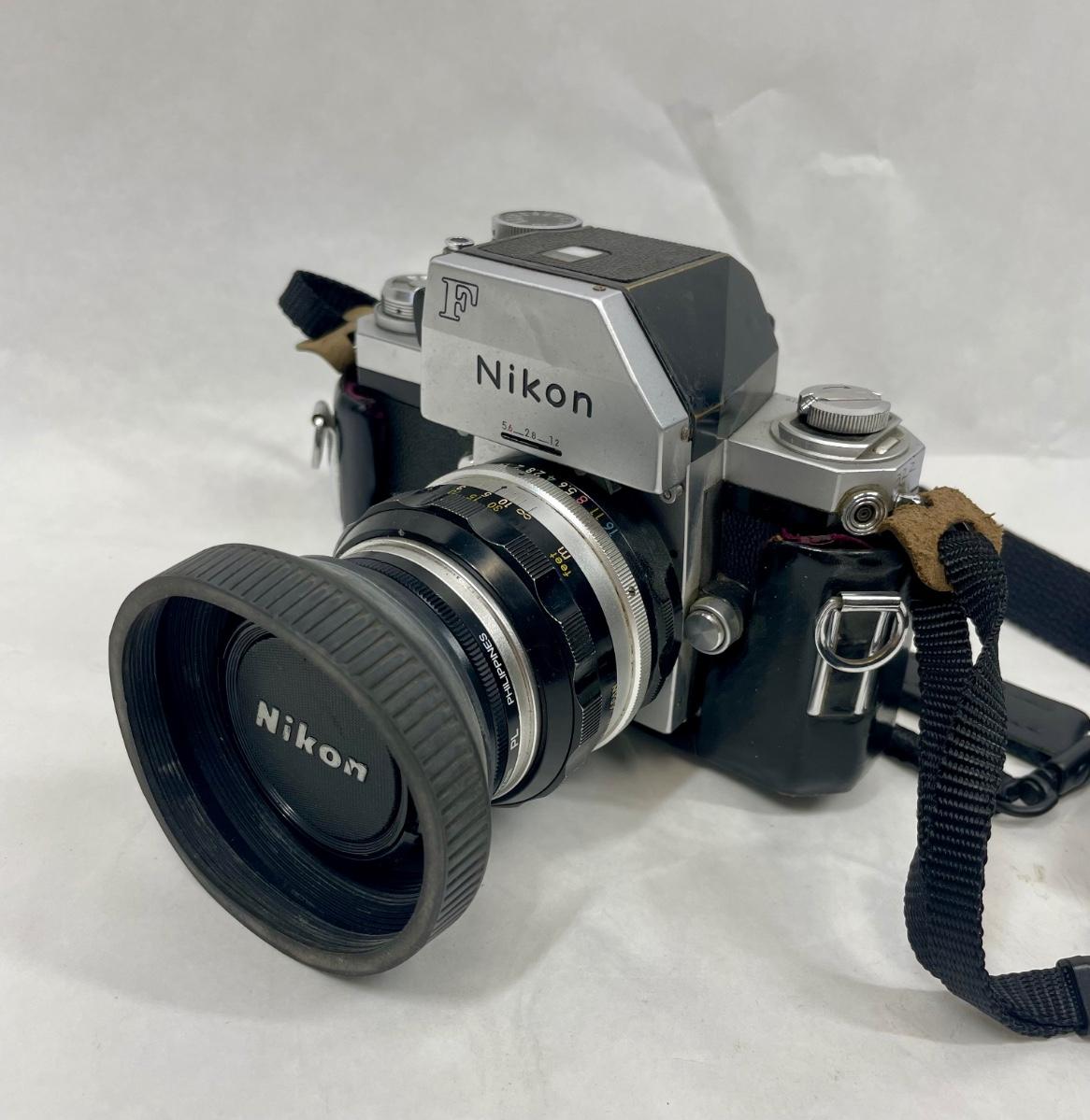 Has Photomic FTN Finder, Nikkor 50mm f/1.4 lens. Full snap-on leather cover, strap, rubber lens hood, attached film can with unexposed roll of film, and (2) 52mm lens filters (Tristar 1A and HOYA PL). Untested, buts appears to be functional and undamaged. Obtained from an estate sale.