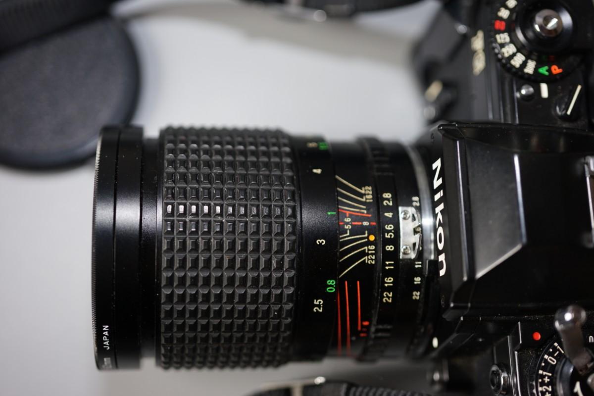 VINTAGE NIKON FG 35 MM WITH 62MM ROKINON BULLET ZOOM LENS w/Leather camera bag