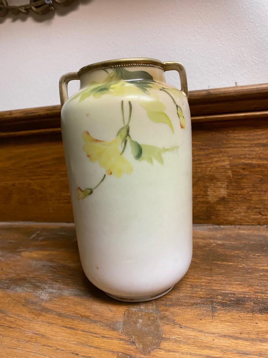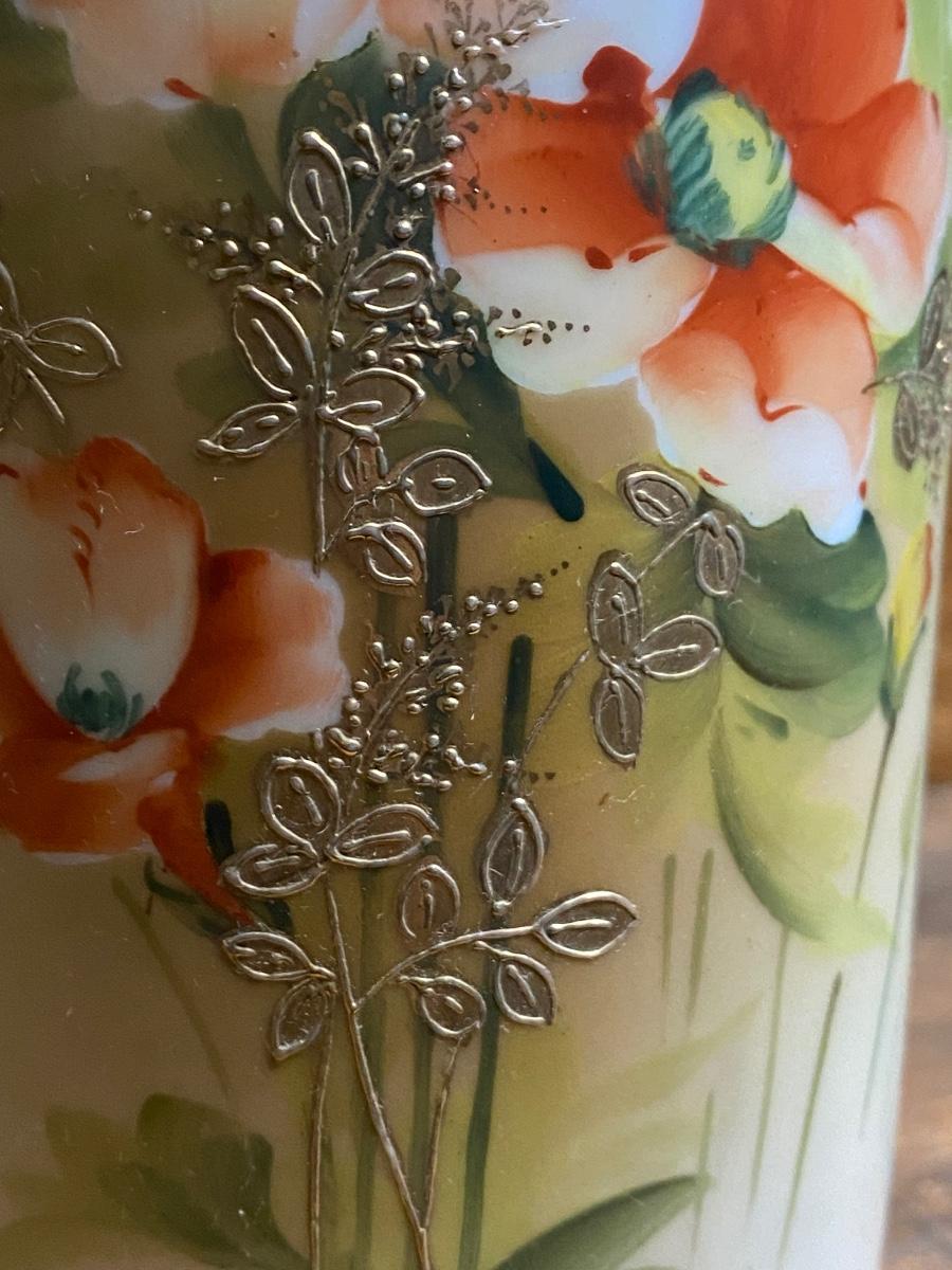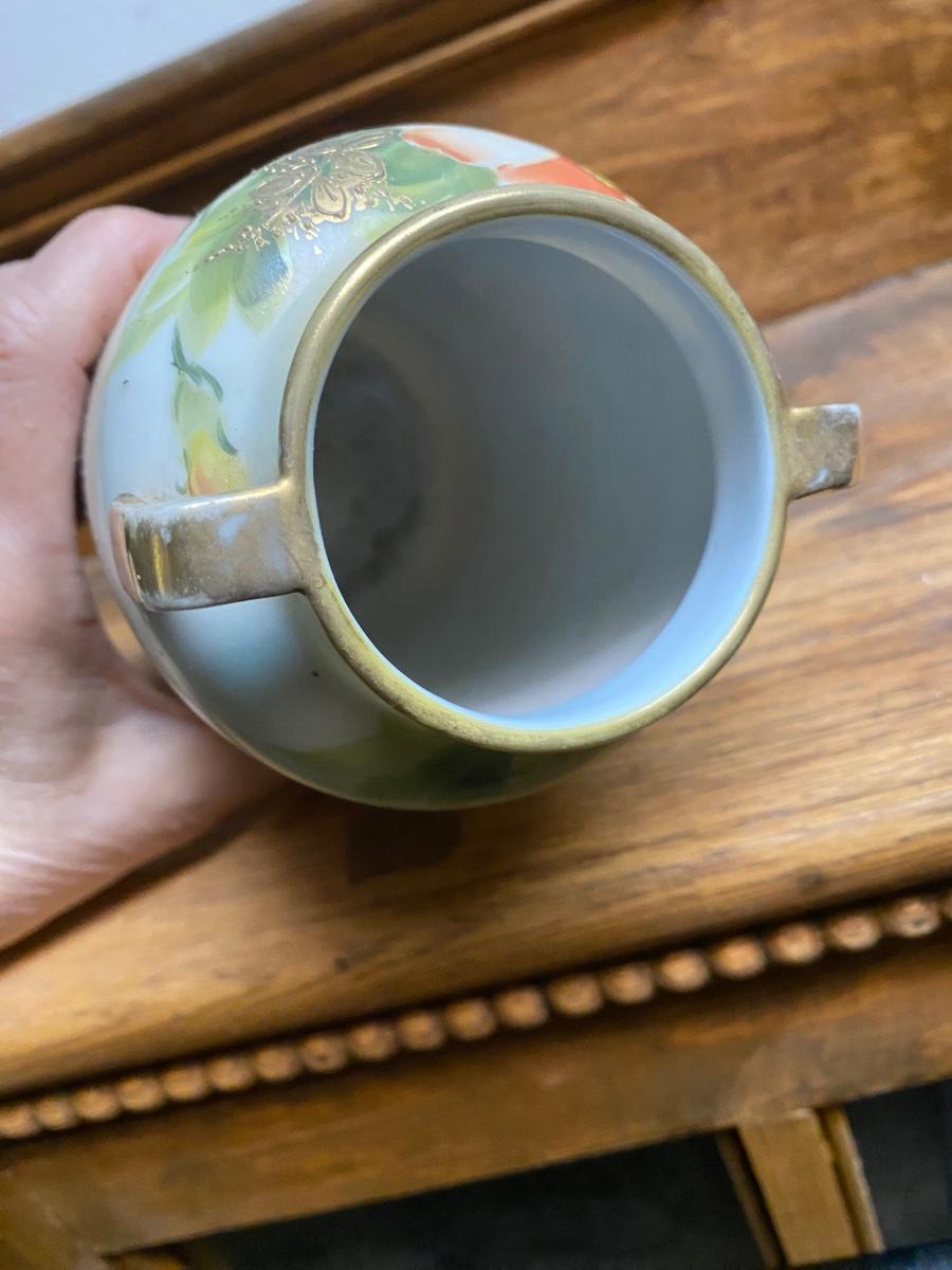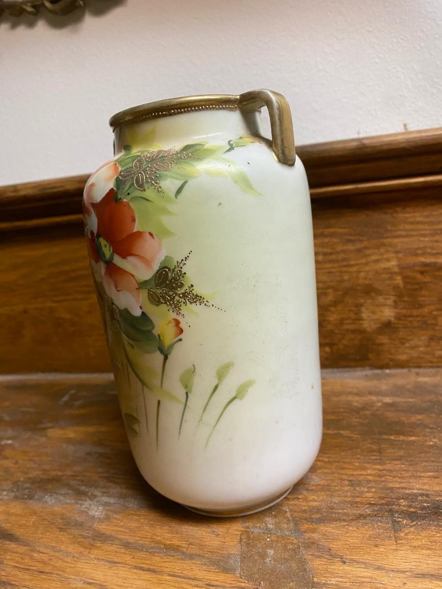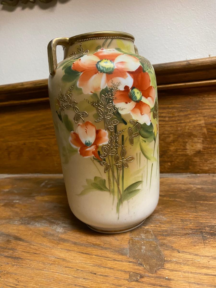 2 handled vintage Nippon poppy themed with gold hightlights vase. Excellent condition with unique design. 6.5" high
