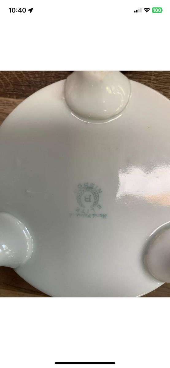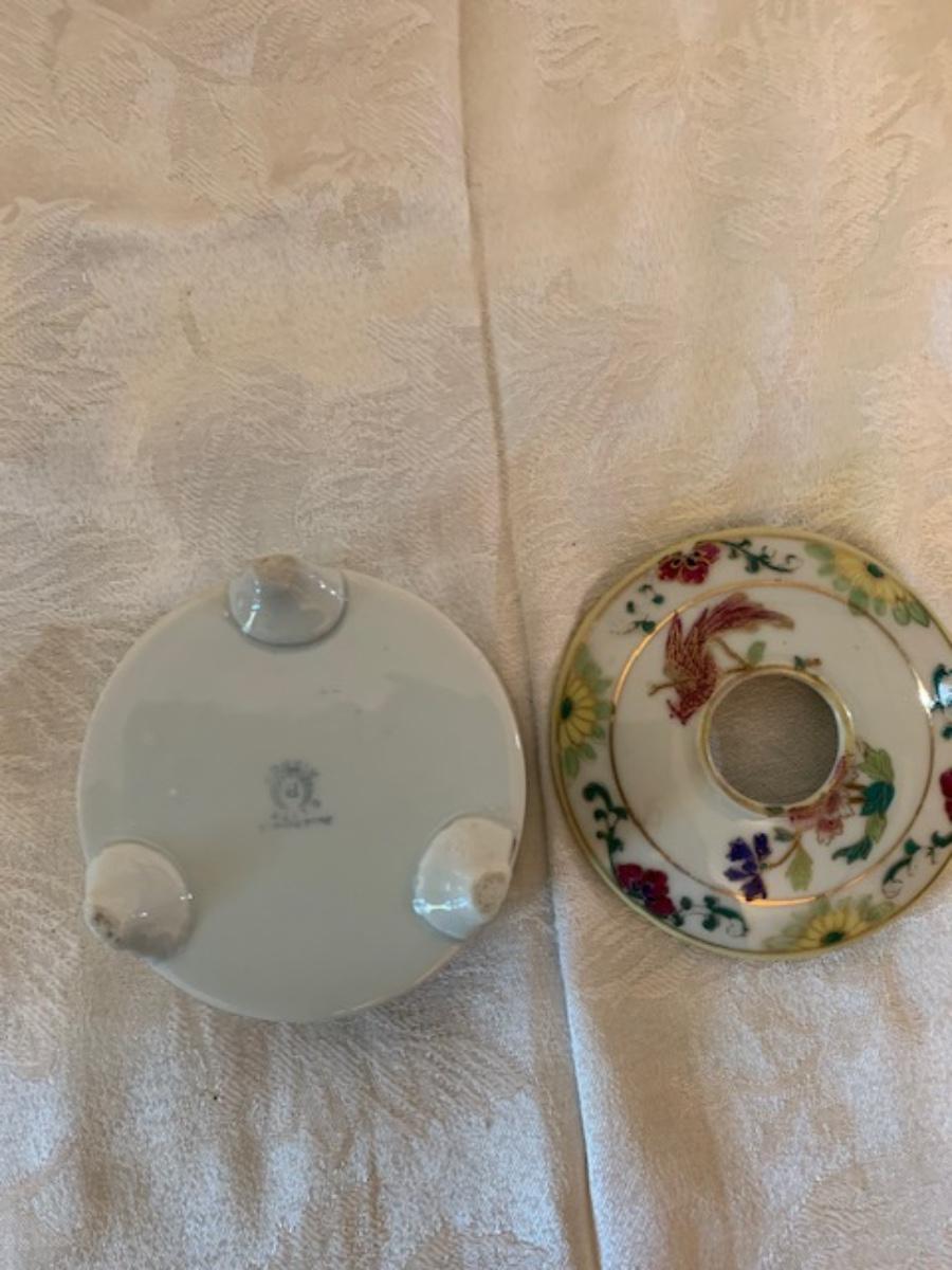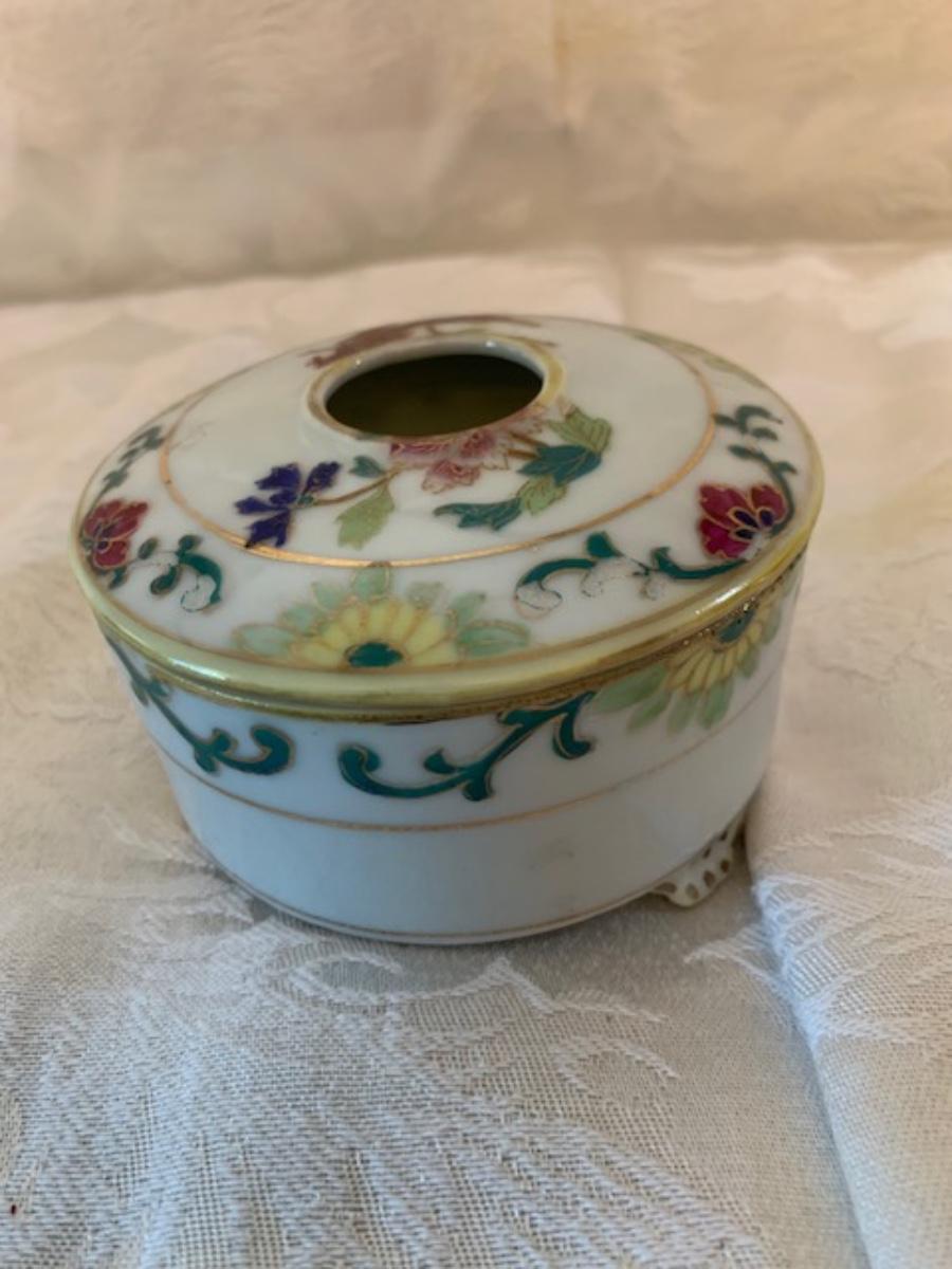 Vintage Nippon, HP porcelain hair receiver. 4 1/4” Diameter
