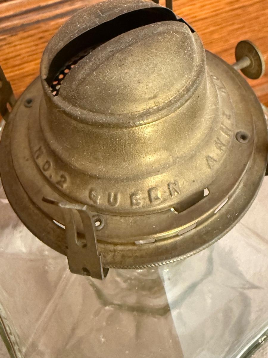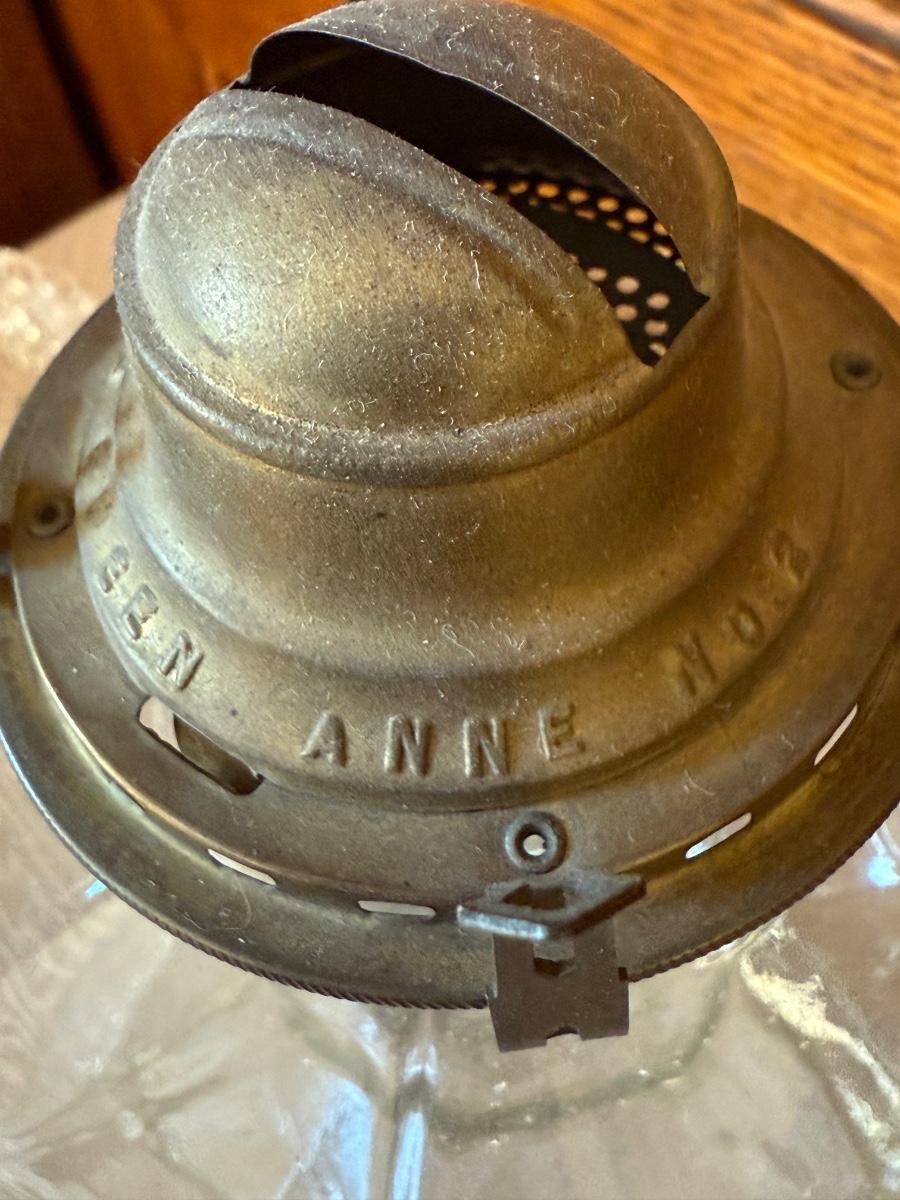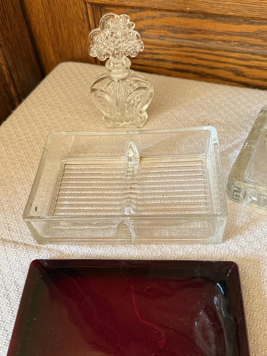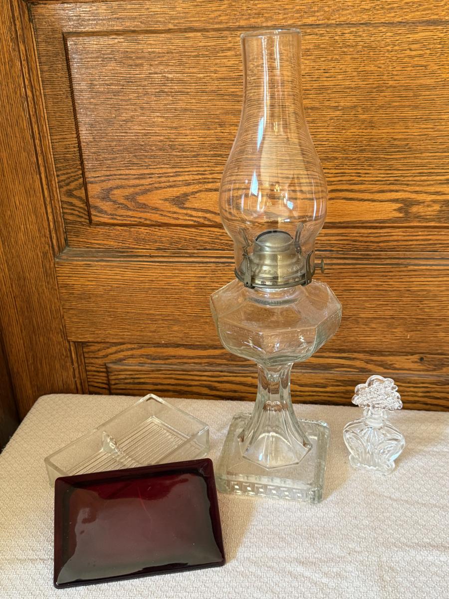 Vintage No 2 Queen Anne Hurricane Lamp, Glass Cigarette Box, Glass Perfume Bottle