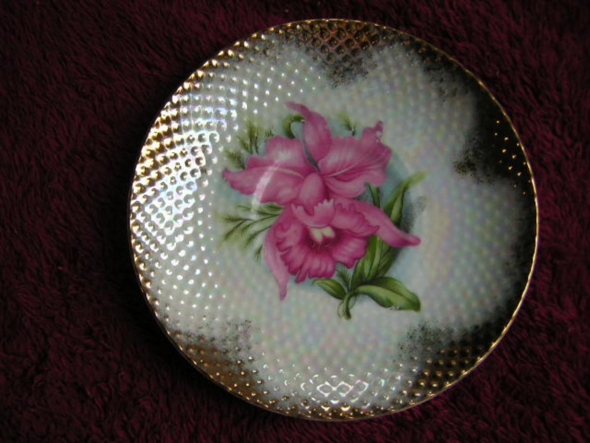 Vintage Norcrest fine china footed teacup & saucer, hand painted w/gold trim on both pieces, Porcelain.