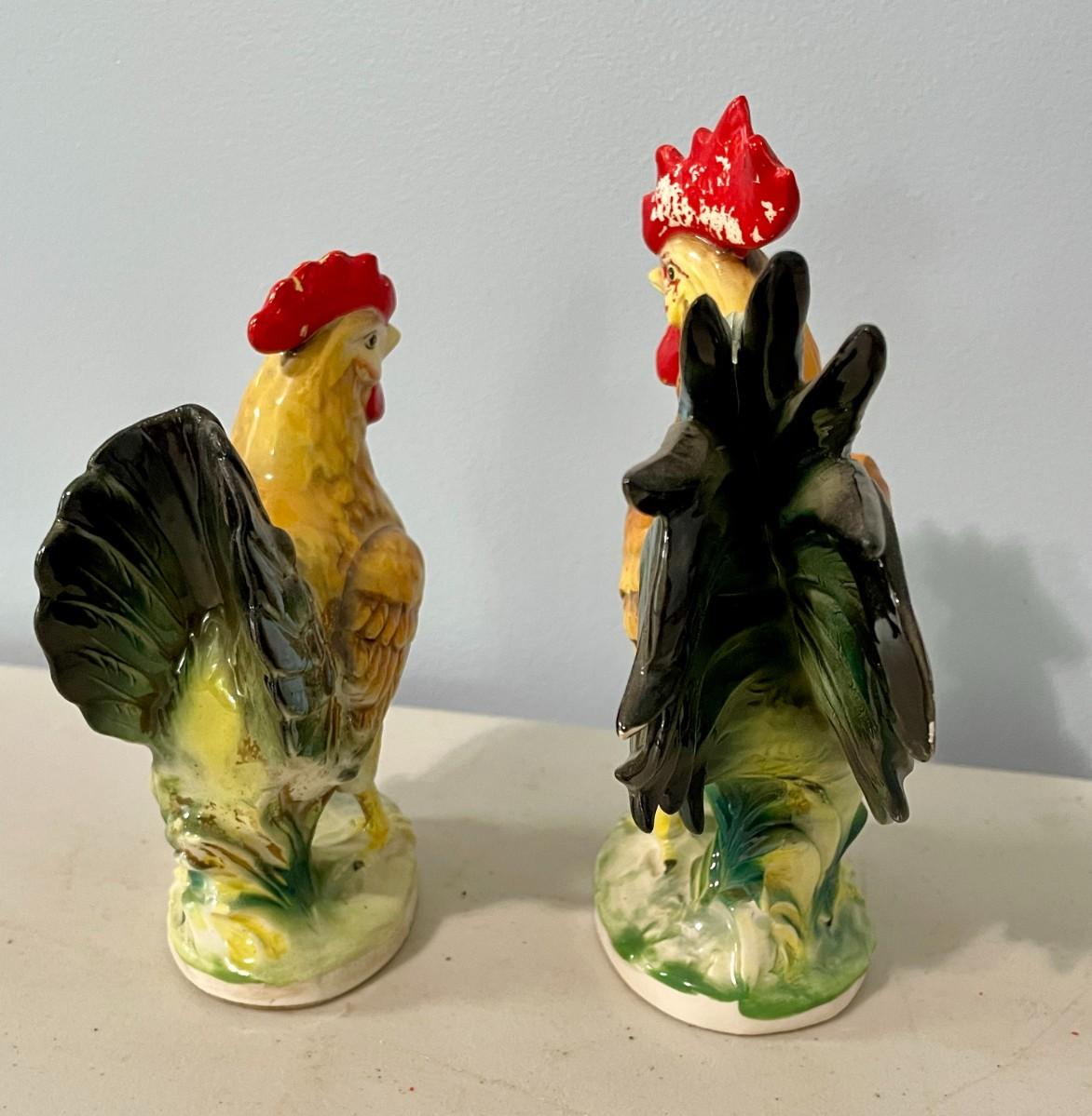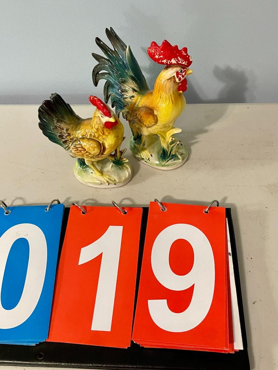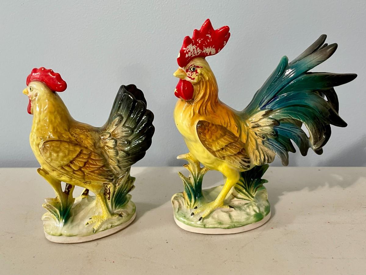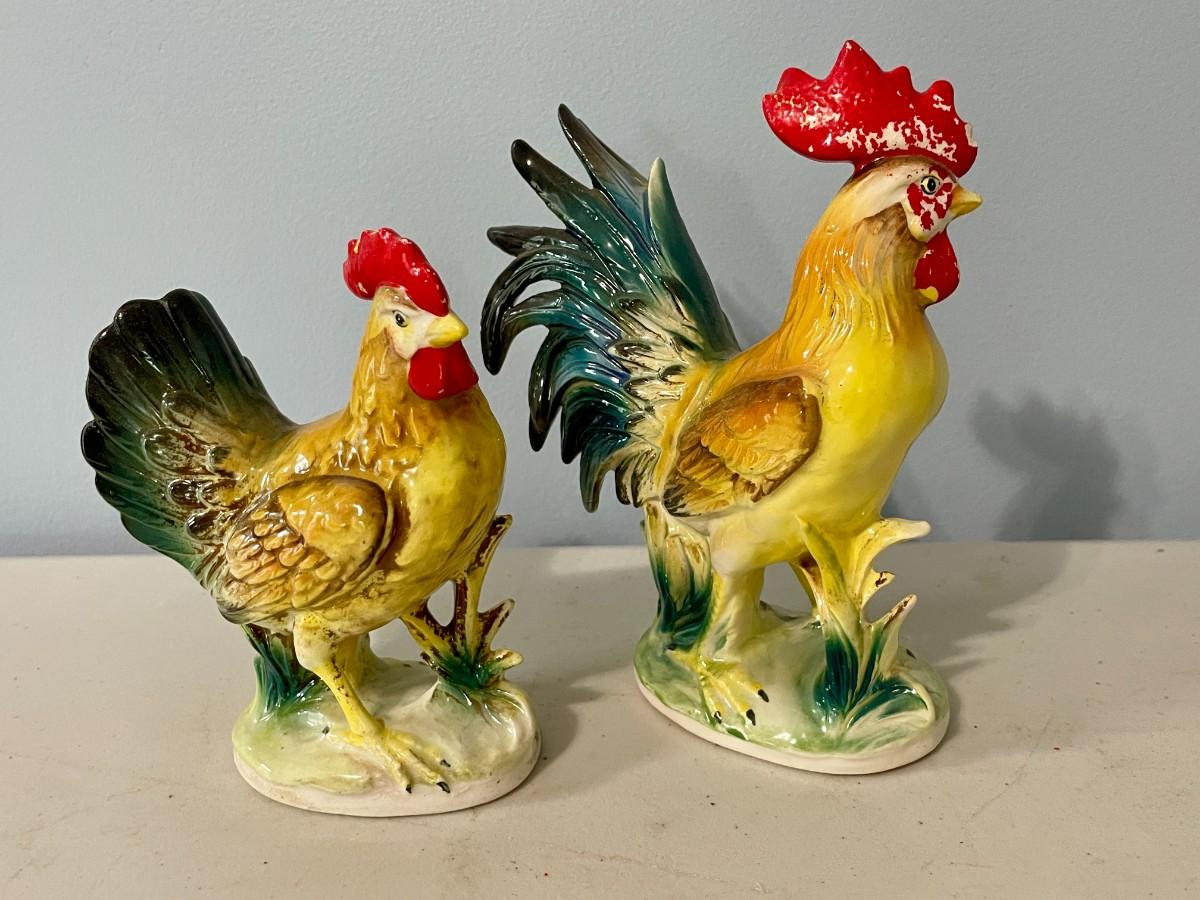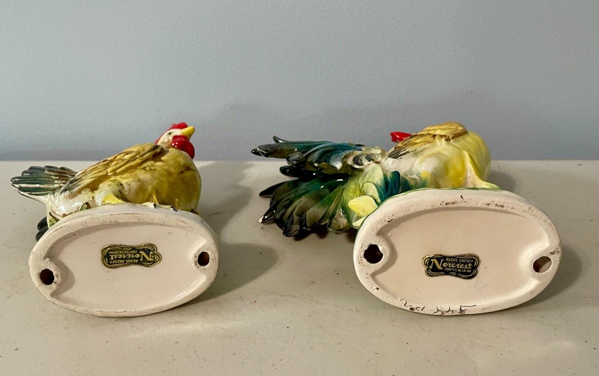 Vintage Norcrest painted ceramic rooster & hen