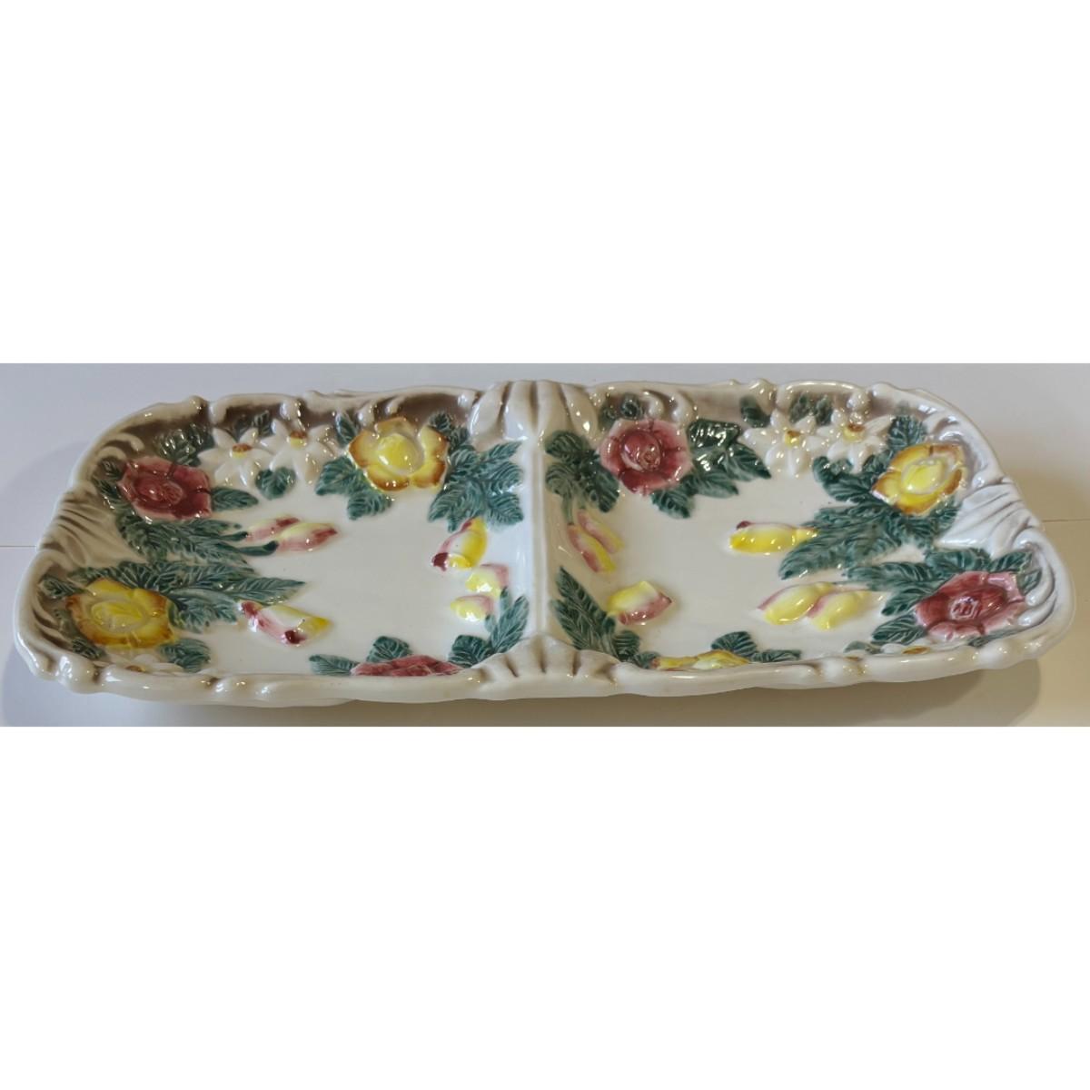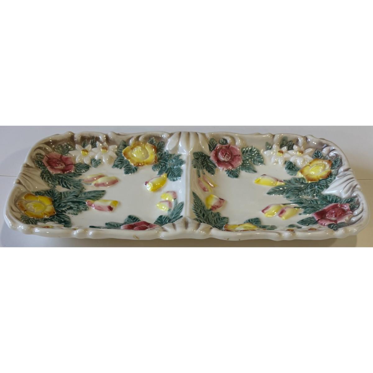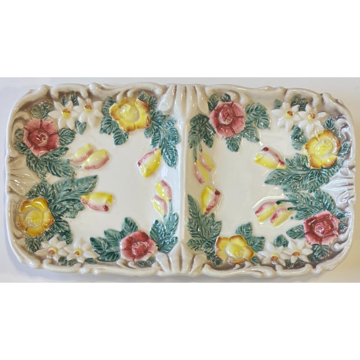 Vintage Norleans Ceramic Rectangular Divided Tray Flowers Floral Made In Japan