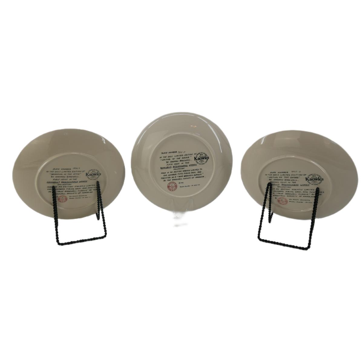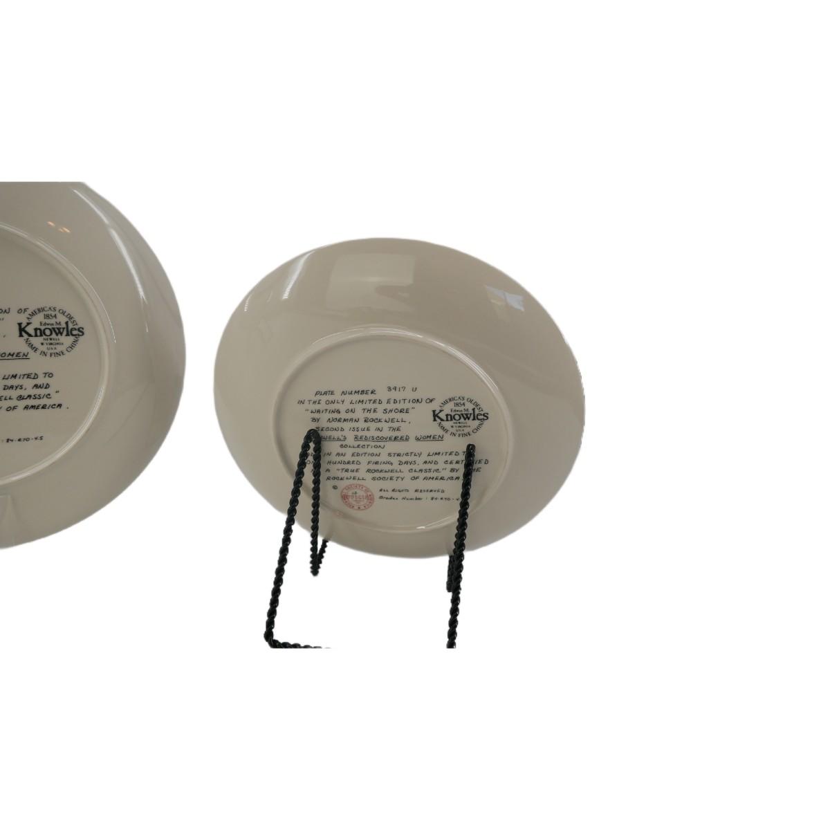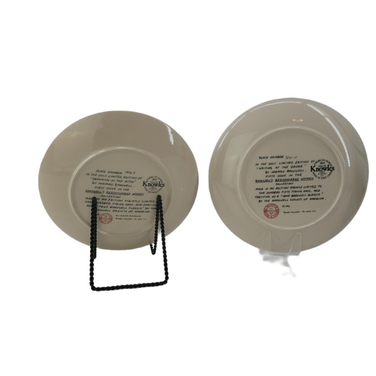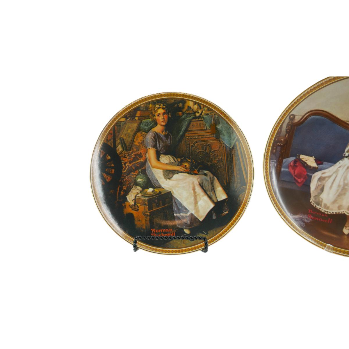 Three vintage Norman Rockwell collectors plates. Limited edition "Dreaming in the Attic" in Rediscovered Women Collection #1822Z. Limited edition 1983 "Waiting at the Dance" in Rediscovered Women Collection #7641O. Limited edition "Waiting on the Shore" in Rediscovered Women Collection #3917U. All in excellent condition. Stands not included. Each measures approximately 8.5" in diameter. Lot weighs 2 lb 6 oz. (C105)