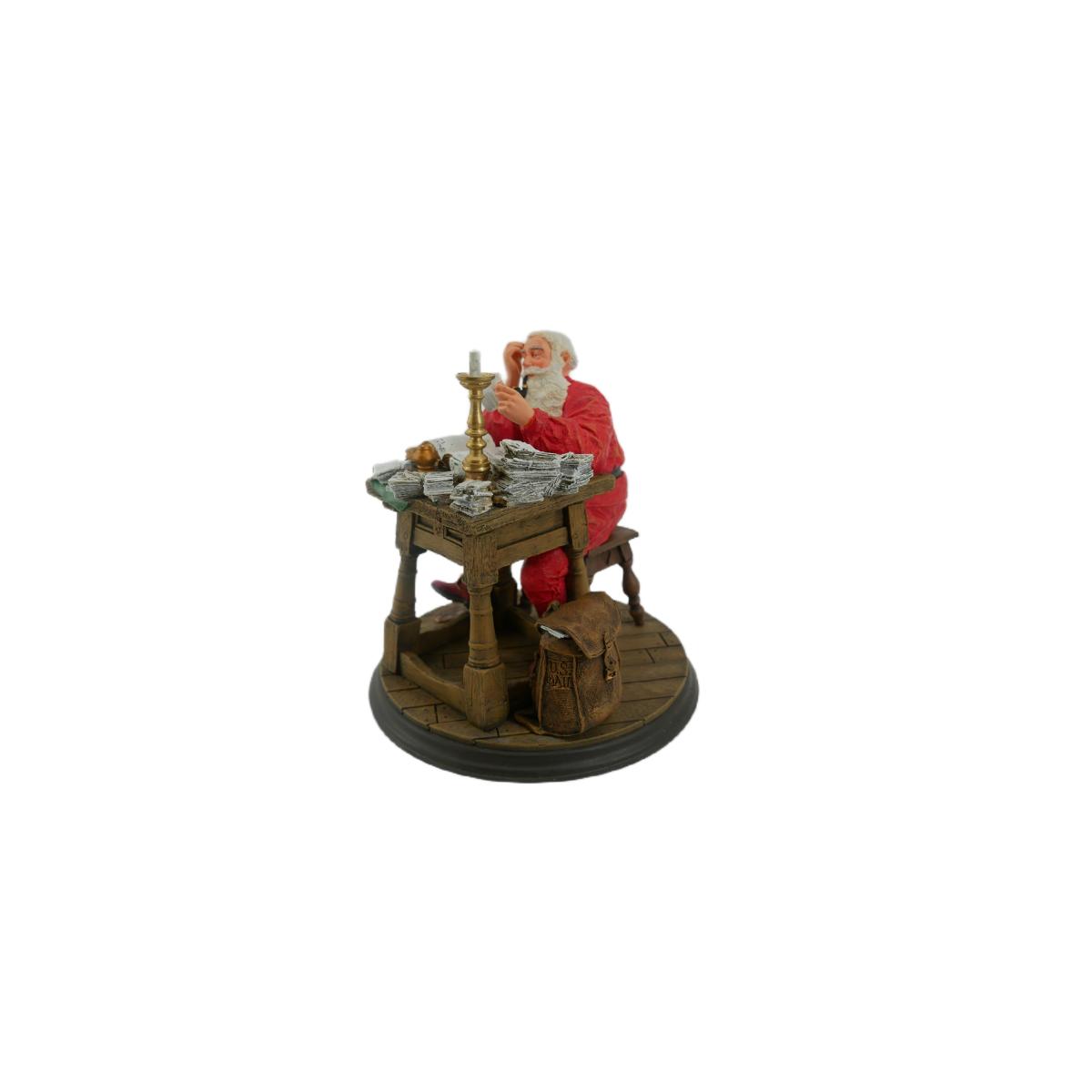Vintage 1992 Norman Rockwell "Making His List", third issue in The Rockwell Heirloom Santa Collection. Numbered C1306. Has multiple repairs and broken feather in Santa's hand. Good condition. Measures L 5.5" x H 6", weighs 1 lb 11 oz. (C125)