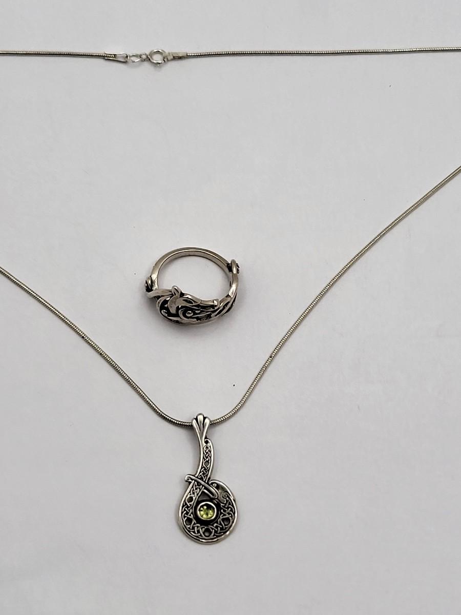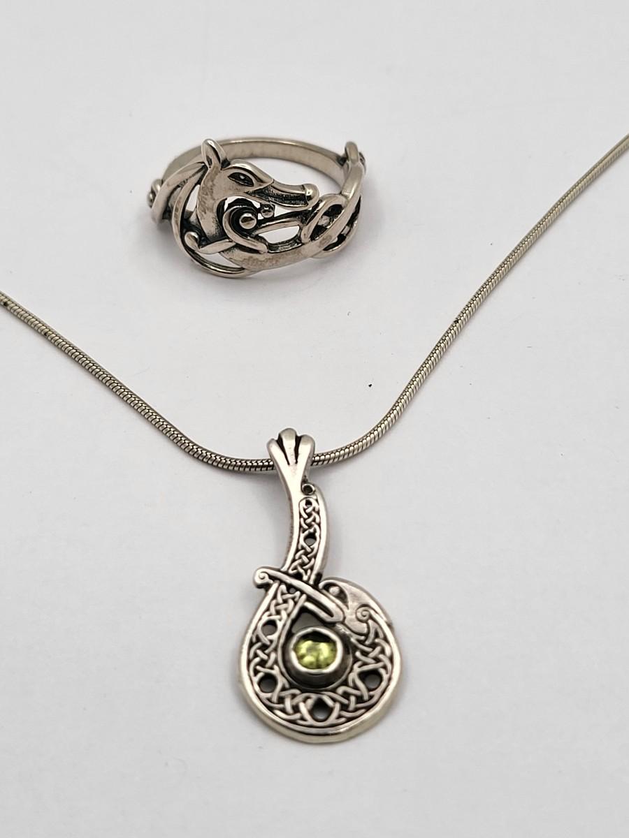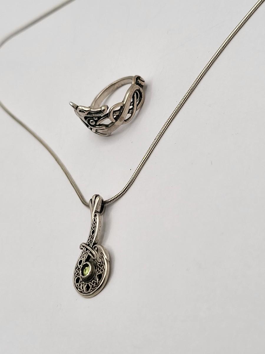 Vintage Norse Scottish Sterling Silver Ring & Necklace 10.2gr
