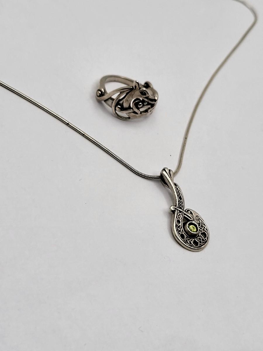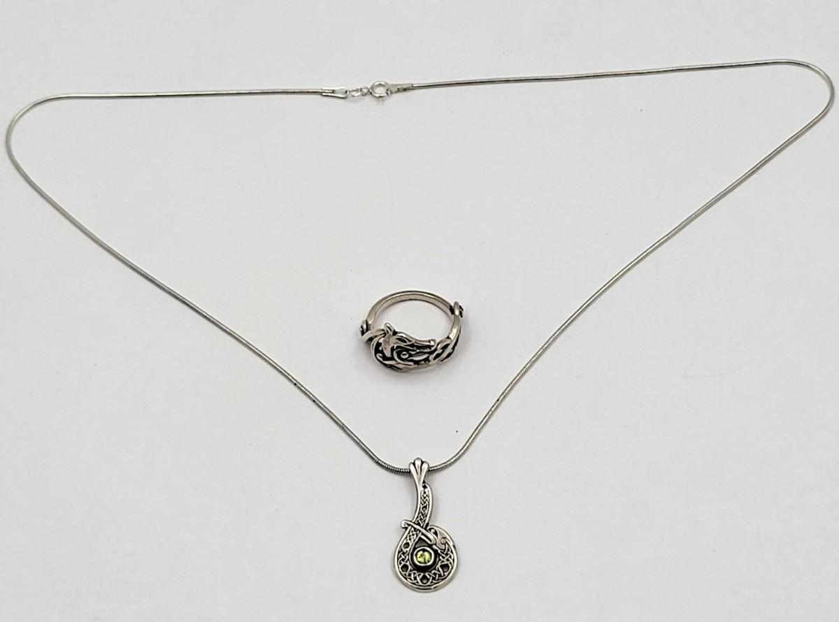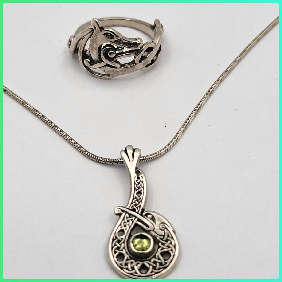 Vintage Norse Scottish Sterling Silver Ring & Necklace 10.2gr