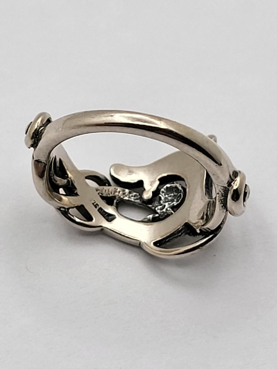 Norse animal head ring, size 5.5 and 17" snake chain with intricate bird pendant. Pendant is 1" long x .5" wide. Total weight 10.2 grams.