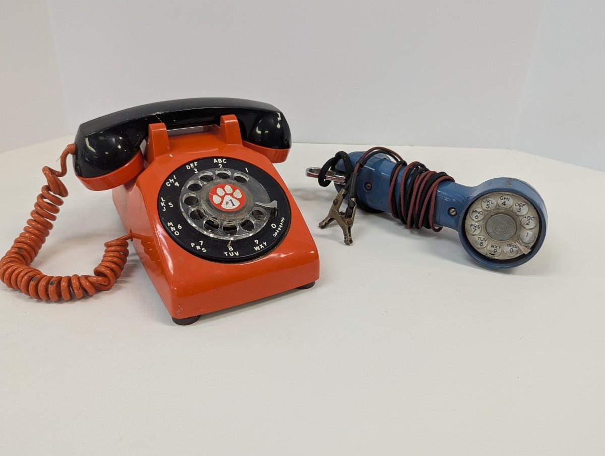Vintage Northern Electric Desk Telephone Orange & Black Rotary Telephone G3 & Vintage Bell Systems Electric Rotary Dial Lineman's Hand Set