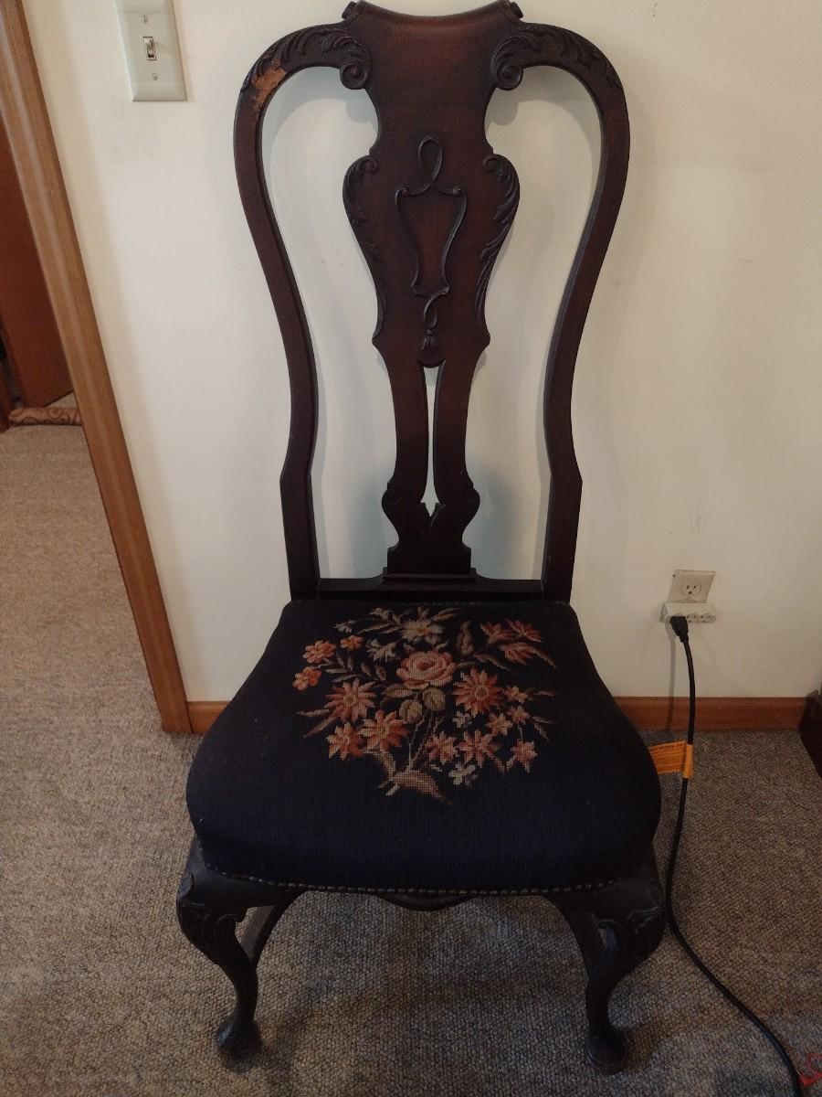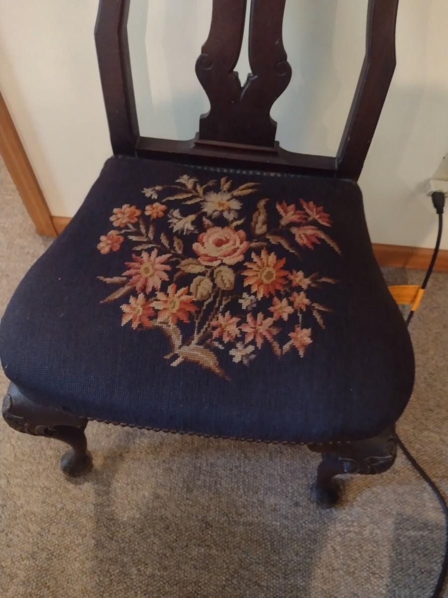 Vintage Northern Walnut Wood Framed Chair with Needlework Seat