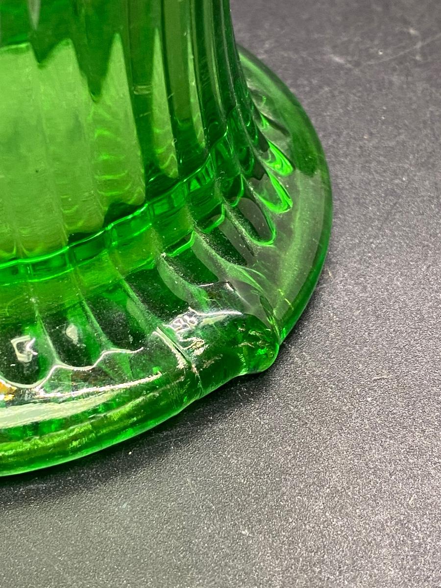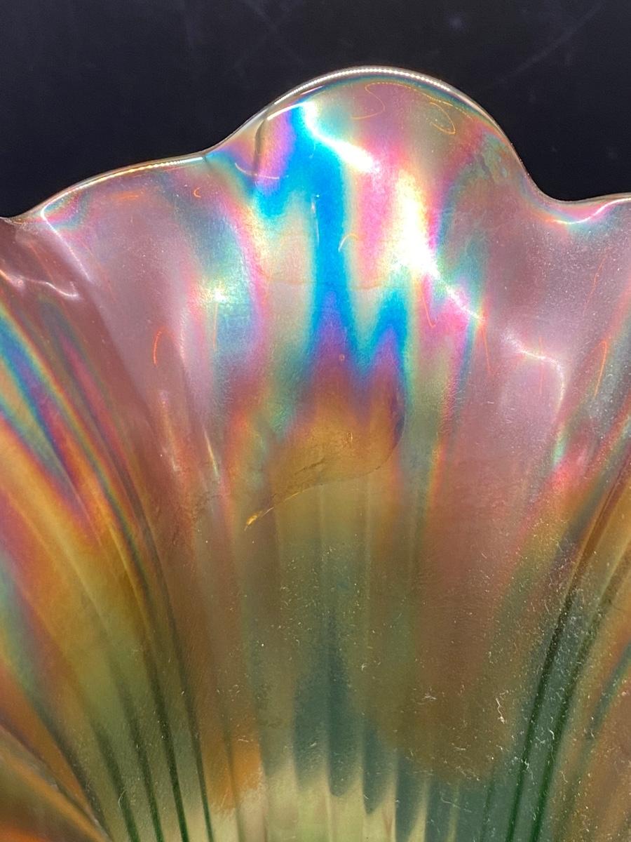 Vintage Northwood Green to Amber Fine Ribbed Squatty Carnival Glass Vase