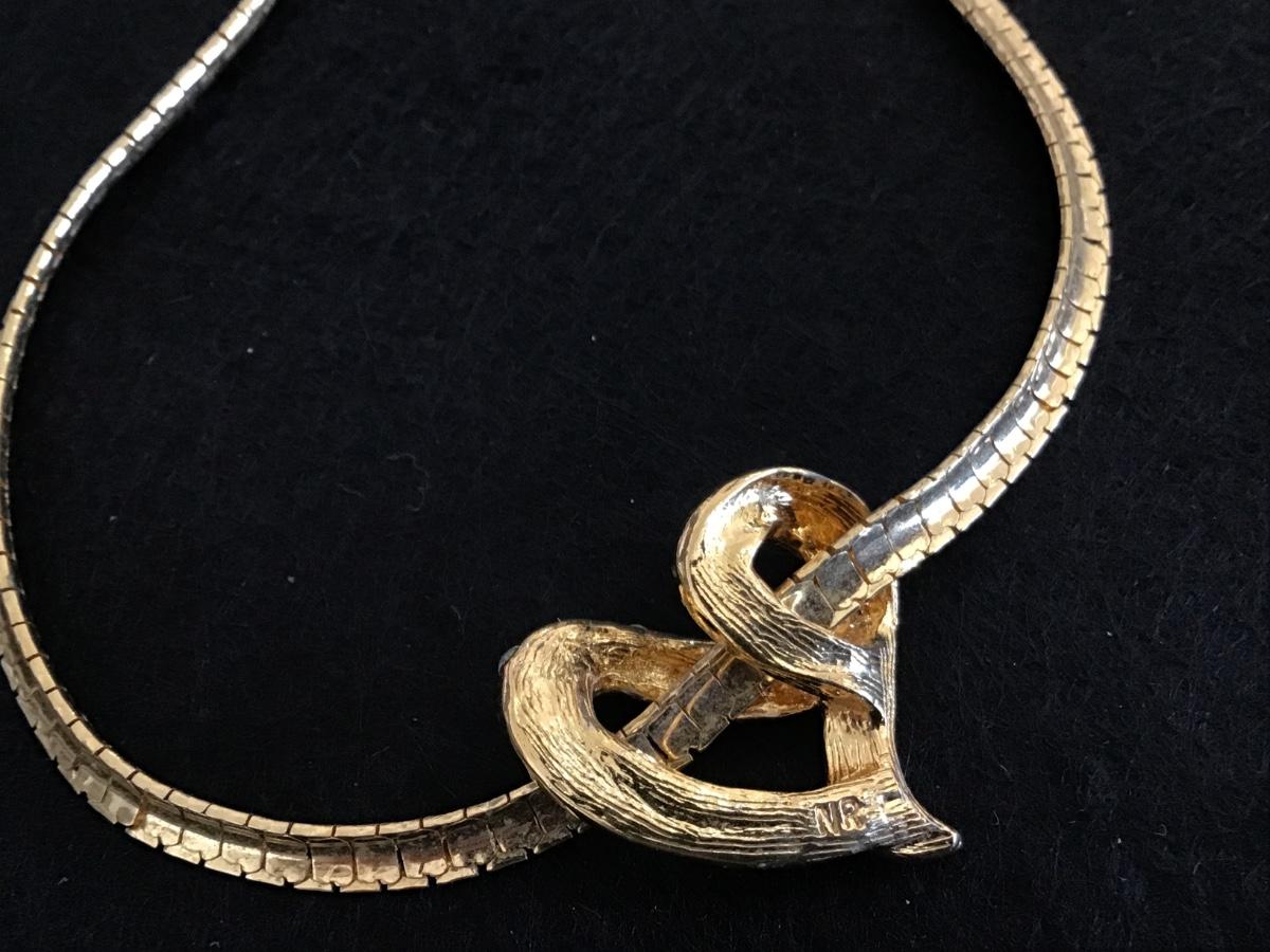 Vintage NR Heart And Chain Collar Necklace Vintage