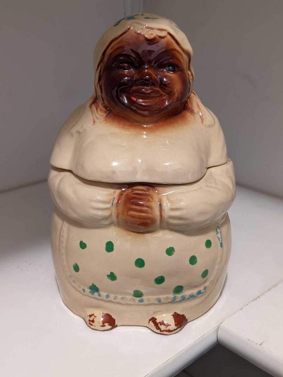 Vintage N.S. Gustin Co. Hand Painted Black Americana Cookie Jar