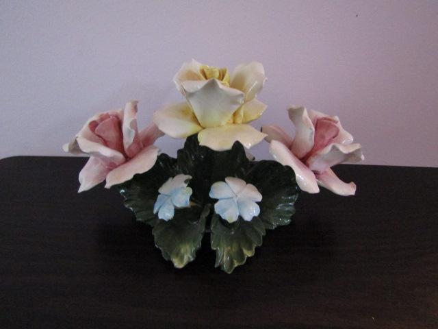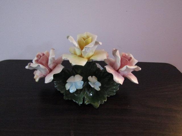 Vintage Nuova Capodimonte Porcelain Roses 8"x4"