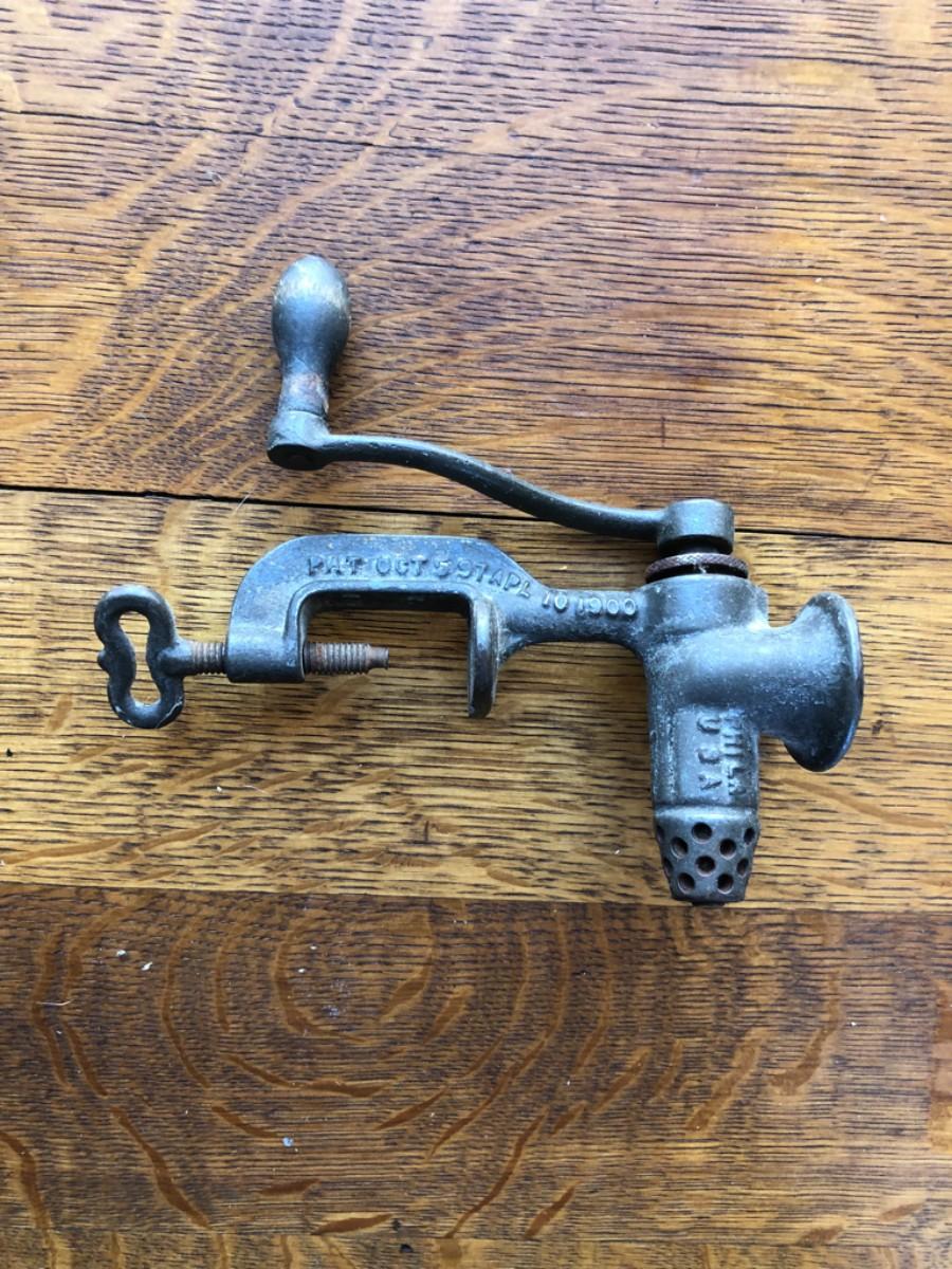 This cast iron nutmeg grinder has a paten on OCT 5 STAPLE 1900 from Enterprise Manufacturing.