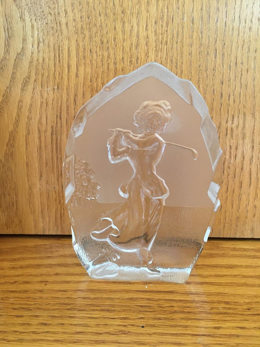 Vintage heavy art glass , paperweight figure of woman golfer. Made in Sweden. Excellent condition.