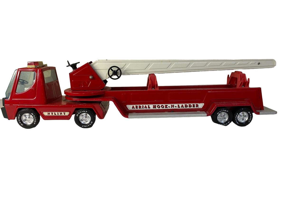 Metal, Vintage Nylint Fire Dept. Big Fire Truck Aerial Hook -N-Ladder 29 1/2 long.