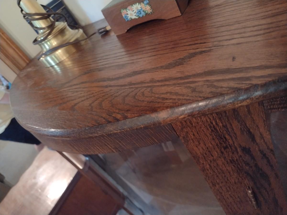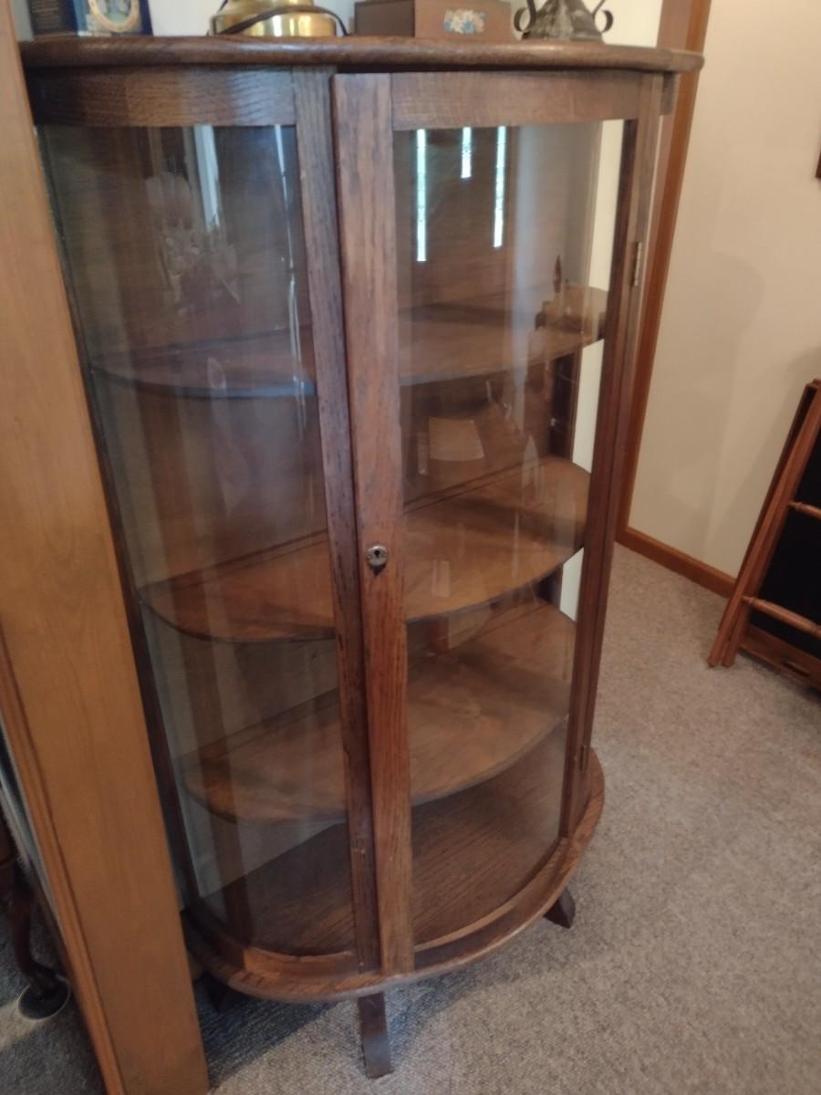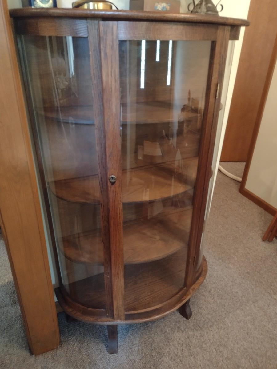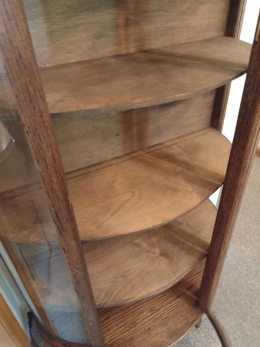 Vintage Oak Bowfront Curio Cabinet with Wood Shelves (No Contents)