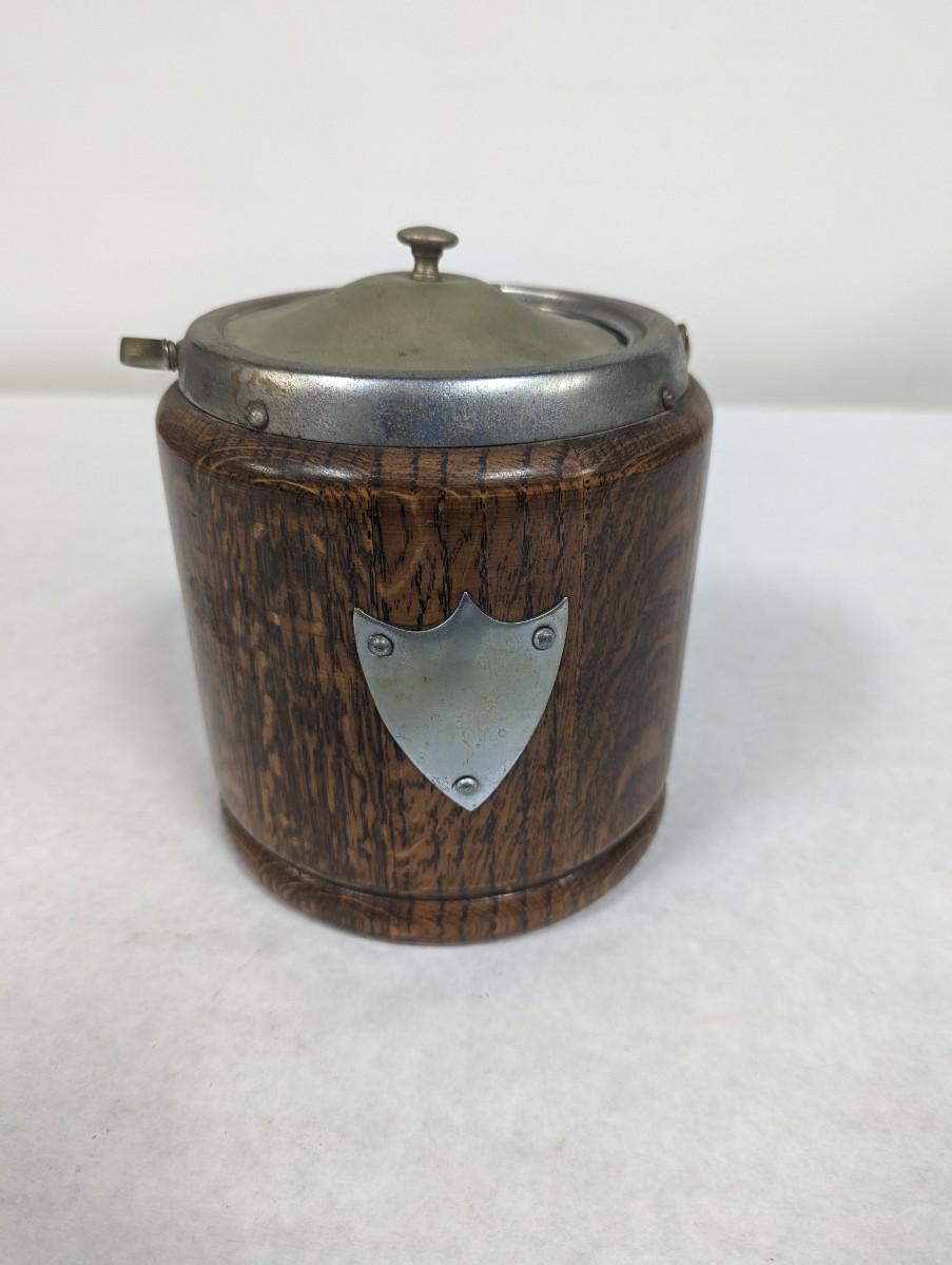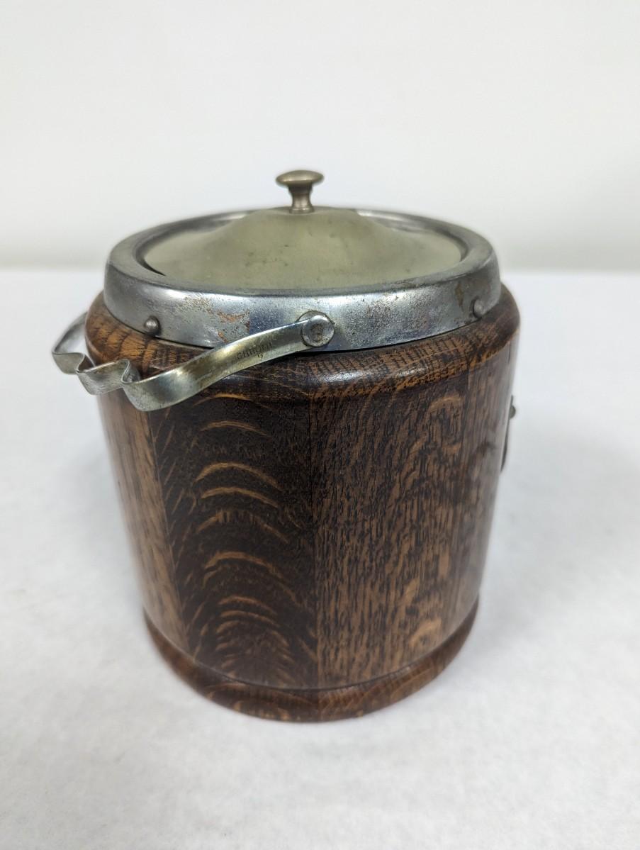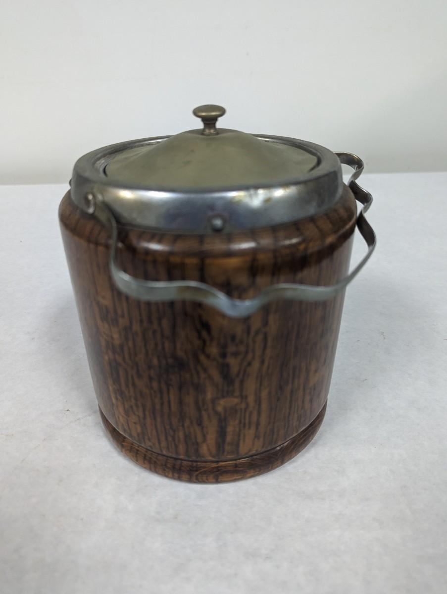 Vintage Oak & Ceramic Ice Bucket