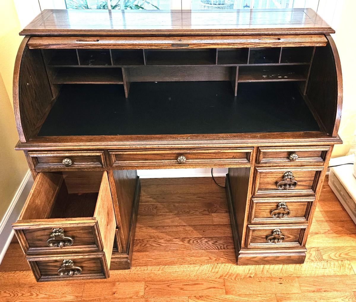 Slight Furniture Vintage Oak Crest Roll-Top Desk