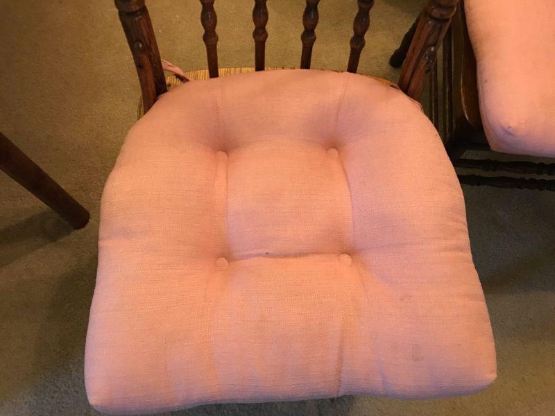 includes 6 rose colored seat cushions-no rips or tears, just need to be washed