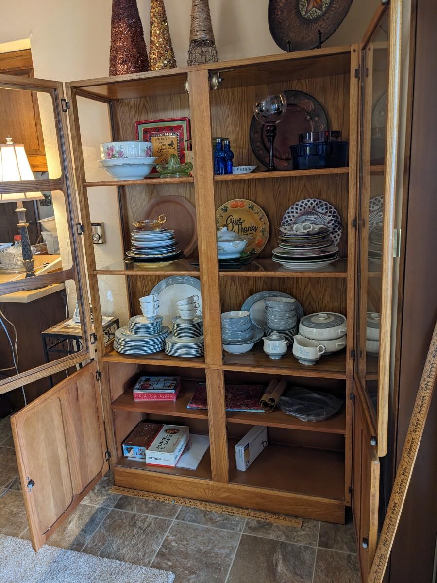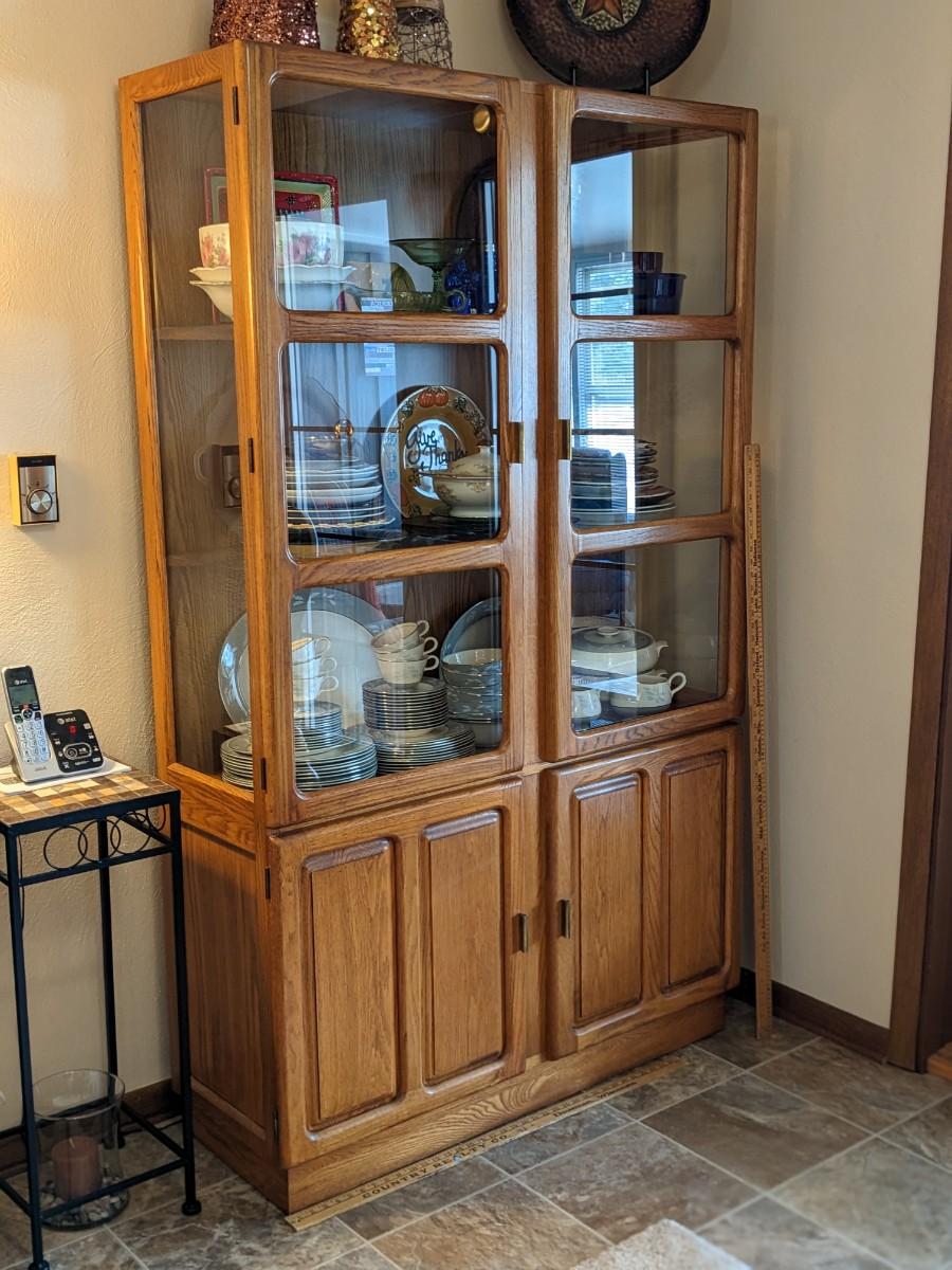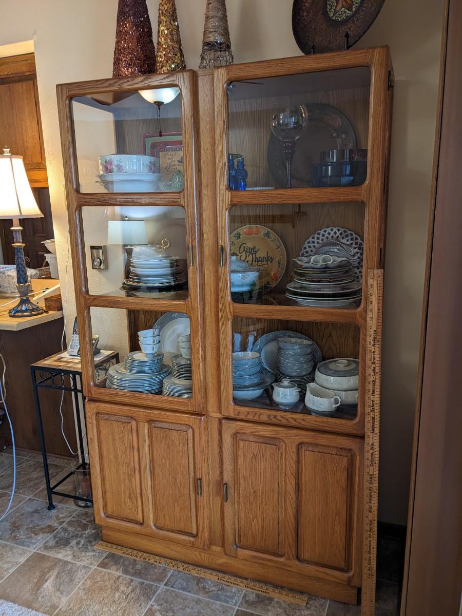Vintage Oak Glass Display Cabinet, Contents not incl