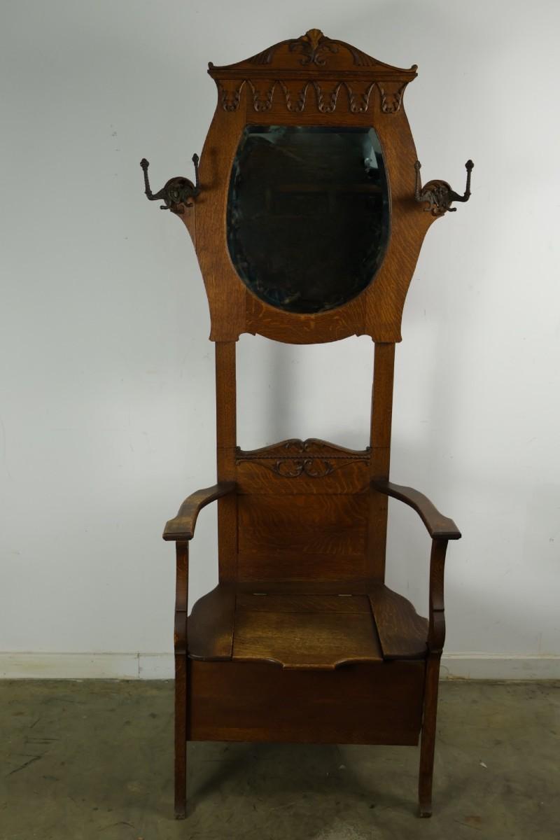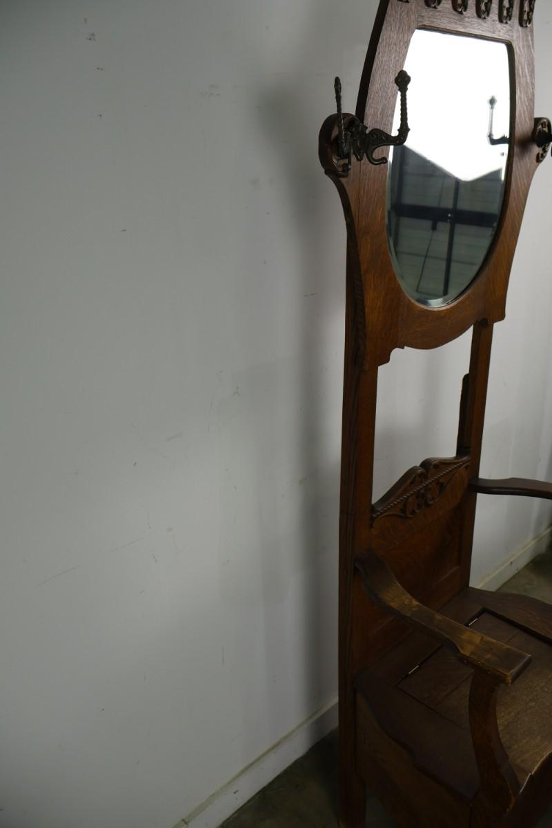 Vintage oak hall tree. 82" x 29 1/4" wide.