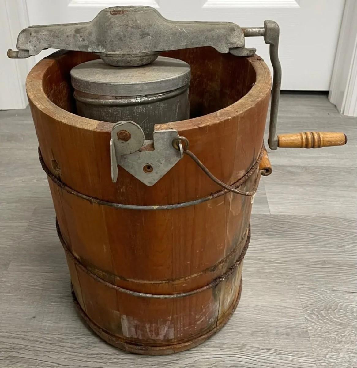 Vintage Oak Ice Cream maker/ White Mountain Freezer