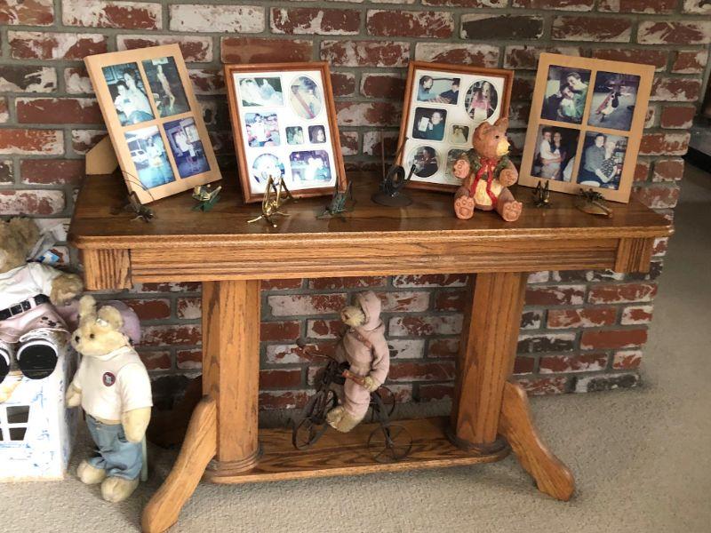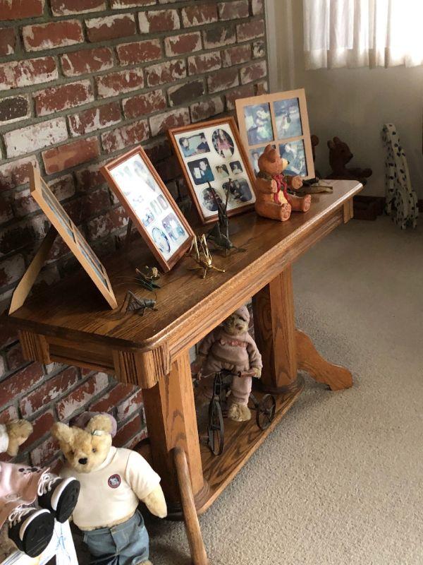 Vintage Oak Sofa Table. Medium finish. Has a water ring stain.