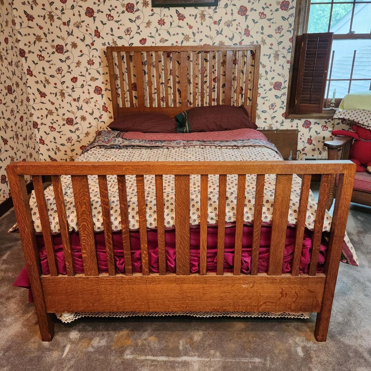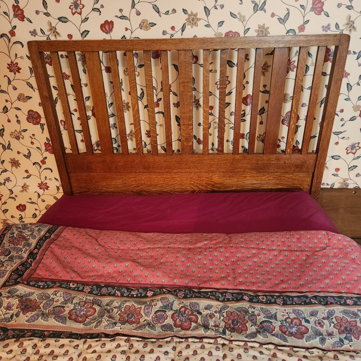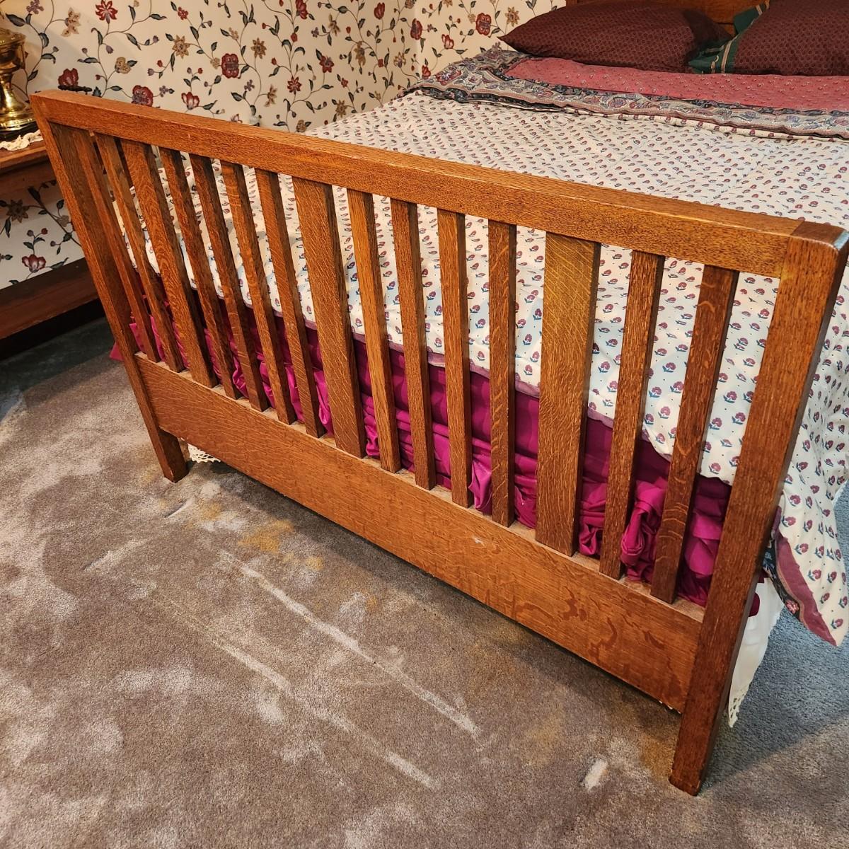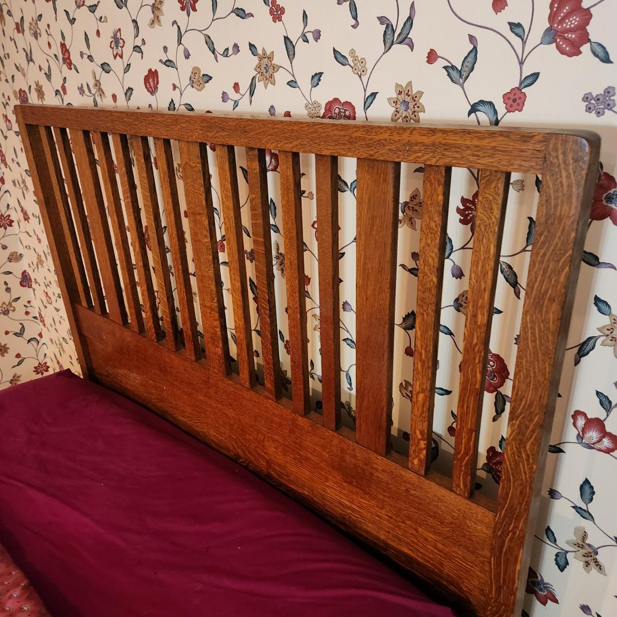 Vintage Mission Style Arts & Craft Oak Wood Full size Bed Headboard Footboard 54" Wide