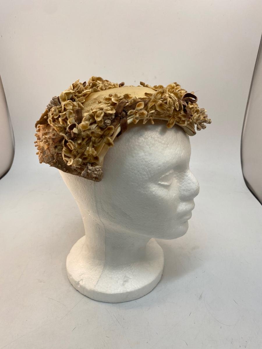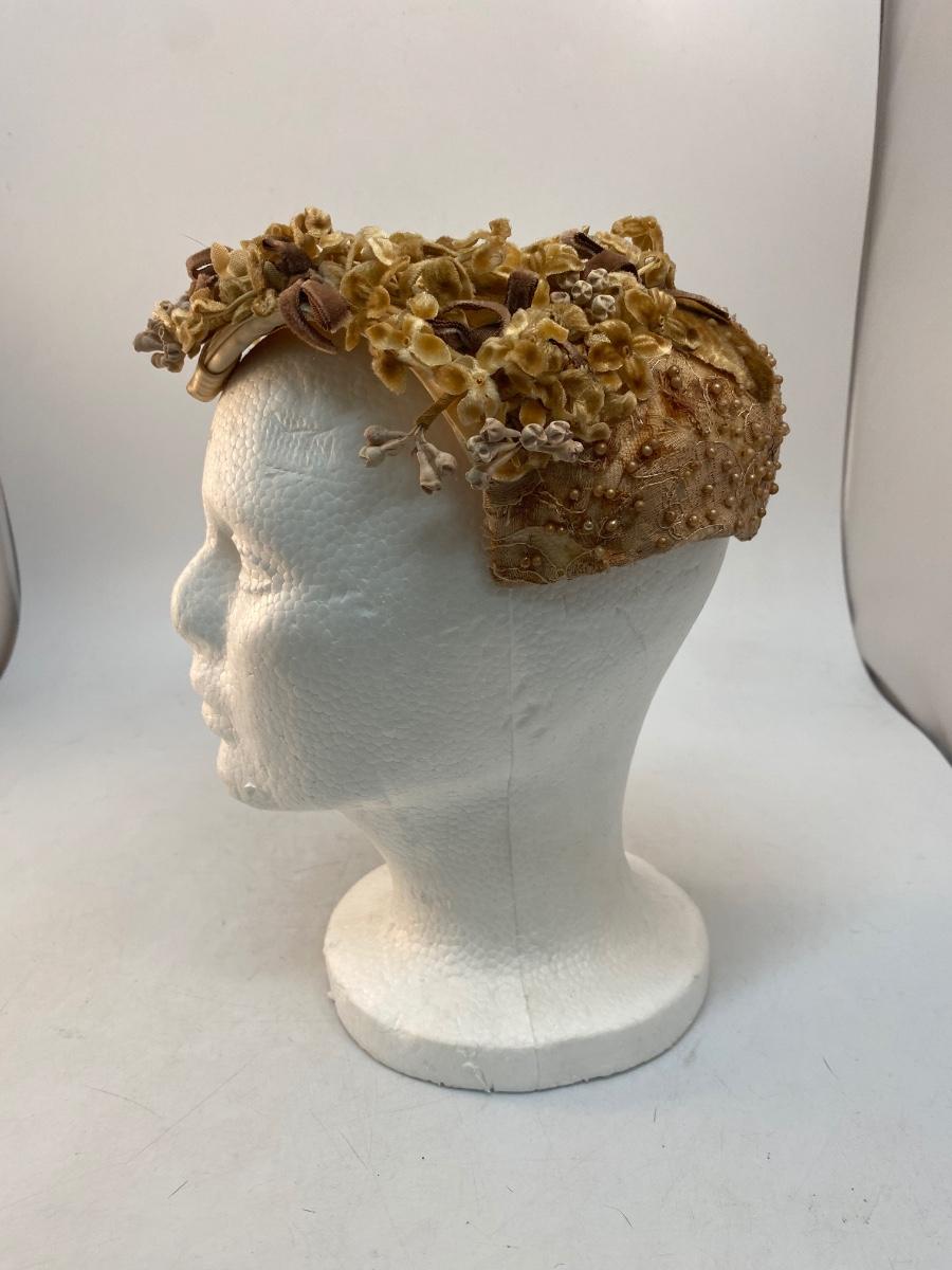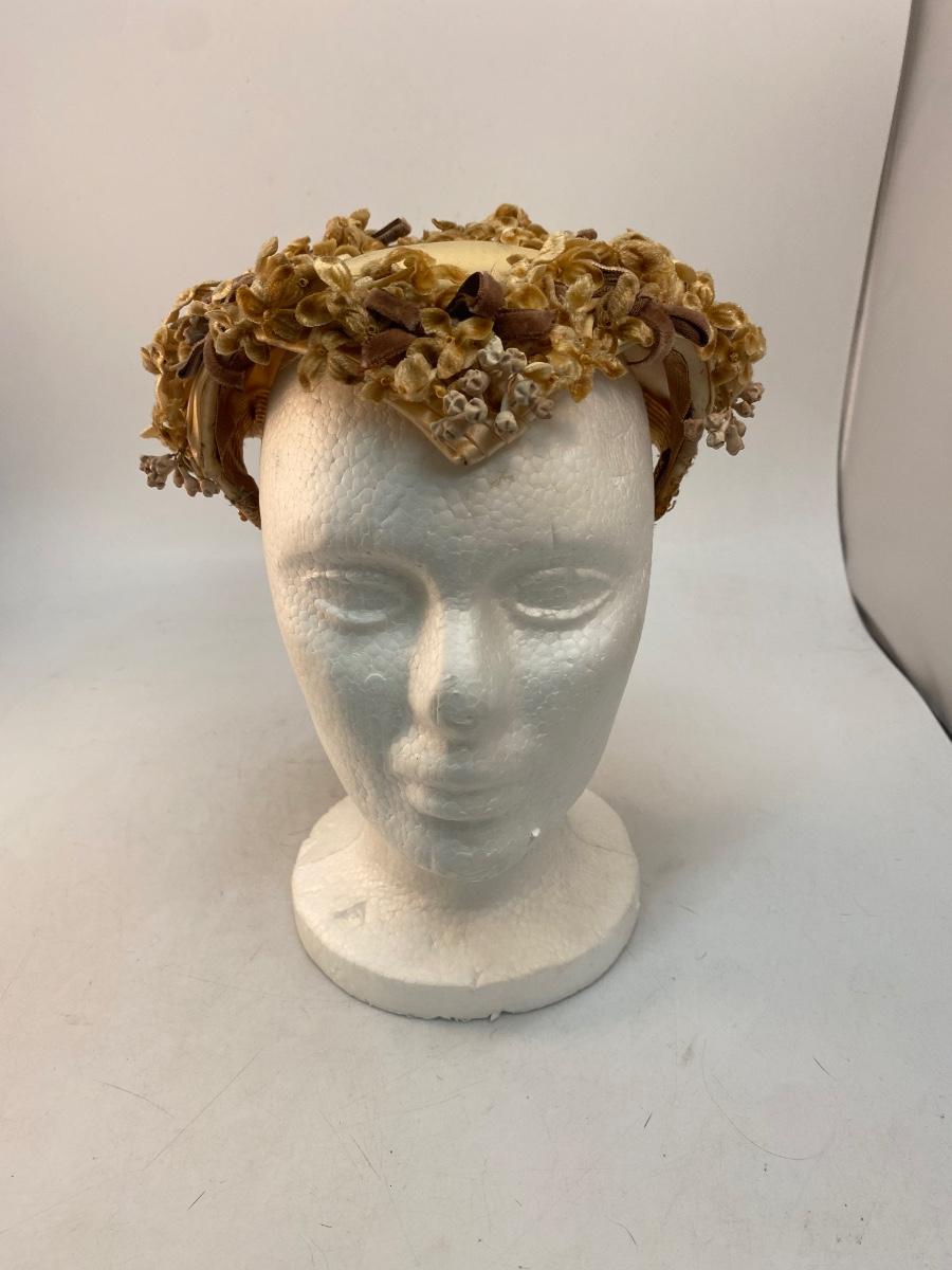 Vintage Off White Beige Floral Fascinator Hat. Unsure if the hat was originally this color or if age has made it this color. Fitted style, with a comb to help hold in place.