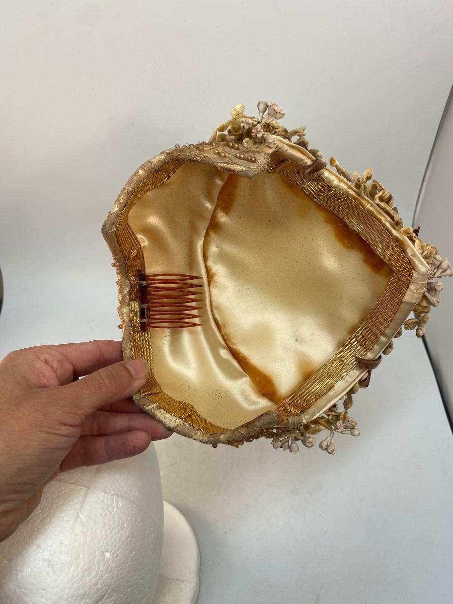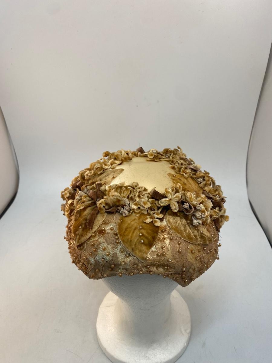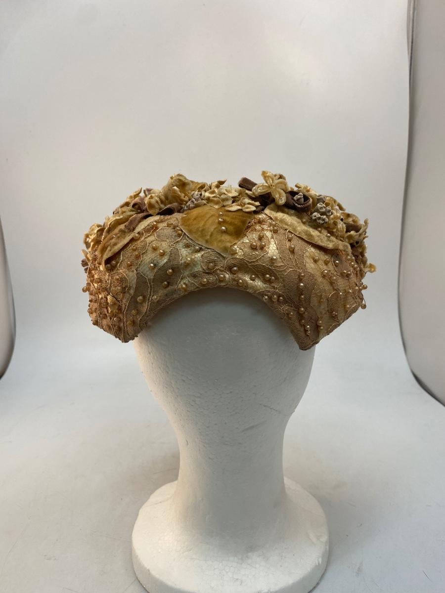 Vintage Off White Beige Floral Fascinator Hat. Unsure if the hat was originally this color or if age has made it this color. Fitted style, with a comb to help hold in place.