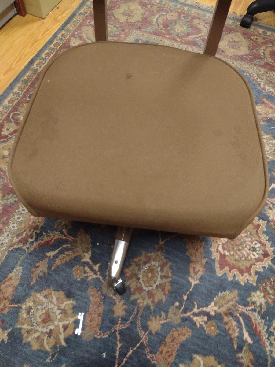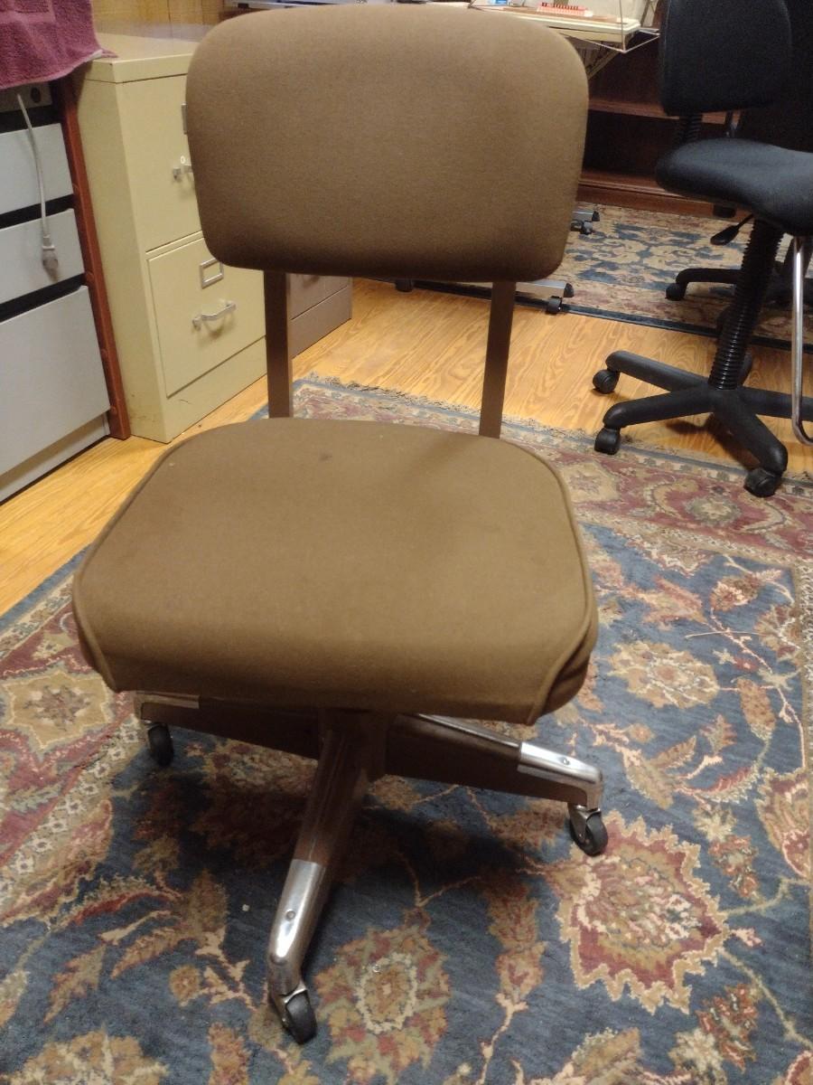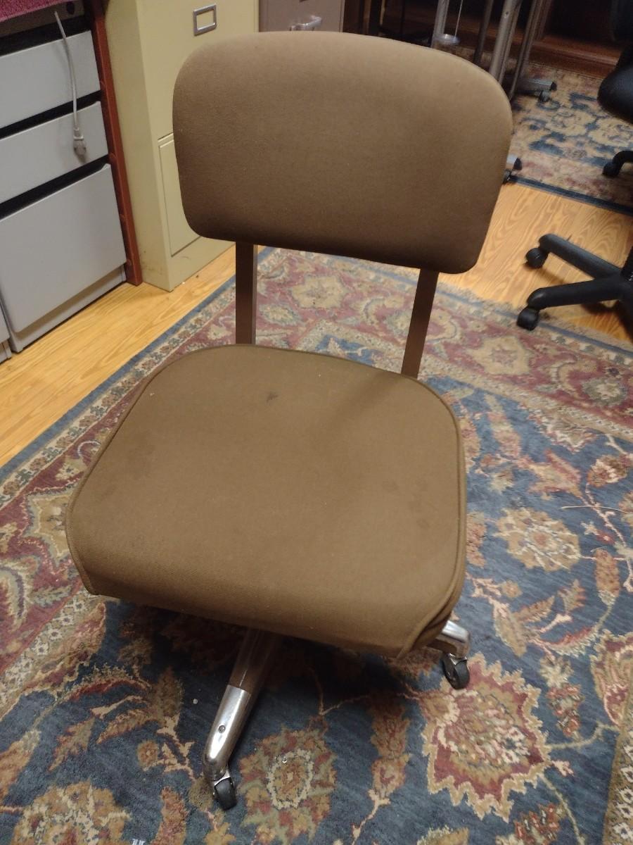Vintage Office Chair. Upholstery has some staining - please see pictures. PLEASE NOTE:. Due to no internet connection or wireless service, all invoices must be prepaid via PayPal, Stripe, or Zelle prior to arrival at pick up. Exact change cash onsite is acceptable but absolutely no debit or credit cards at time of pick up.