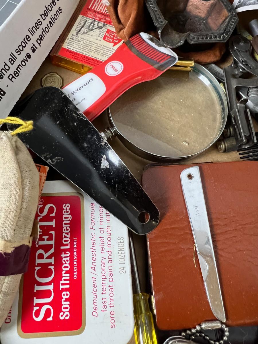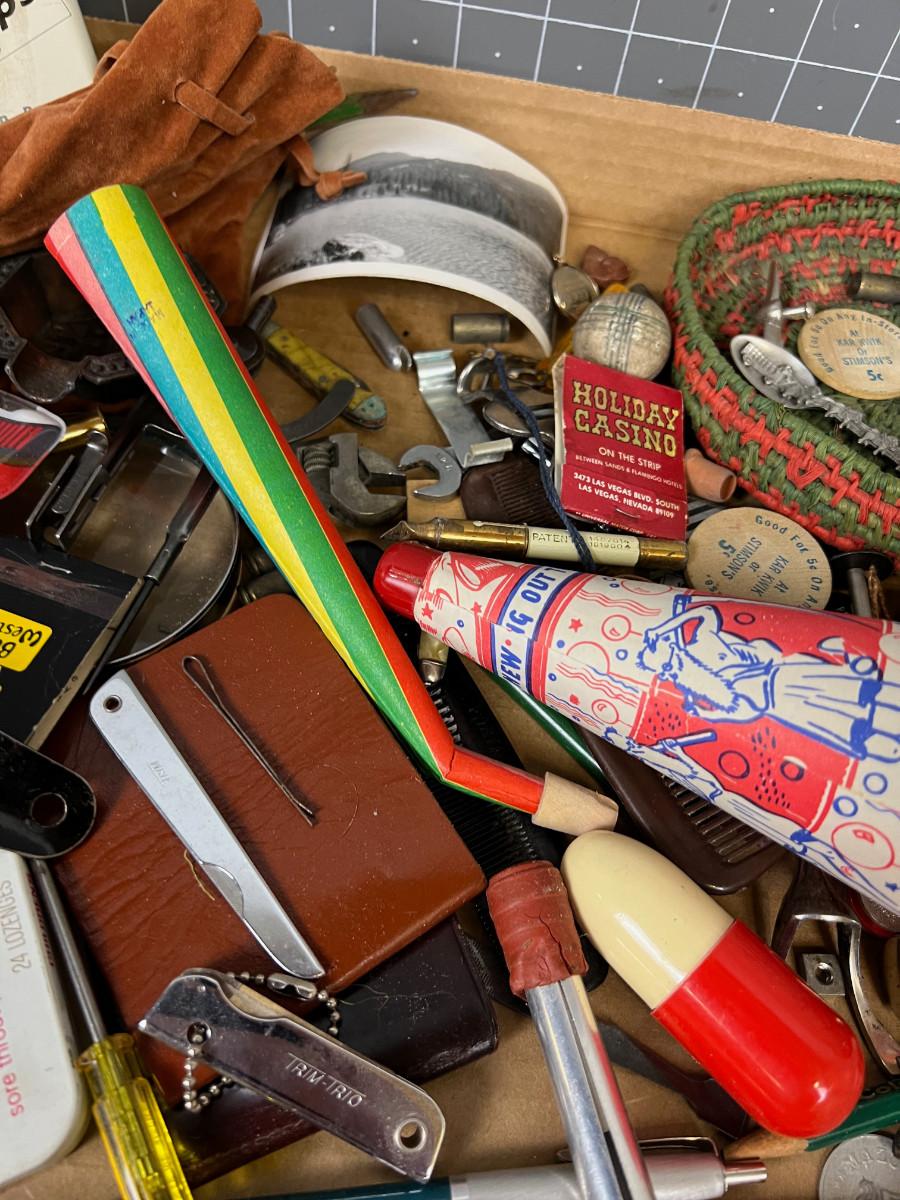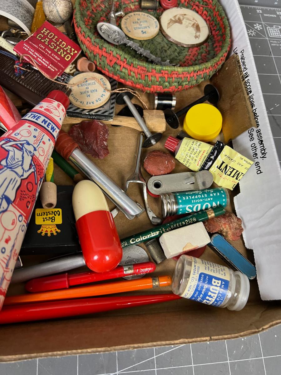 Vintage Office Drawer Clean out Tray With Vintage Noise Maker