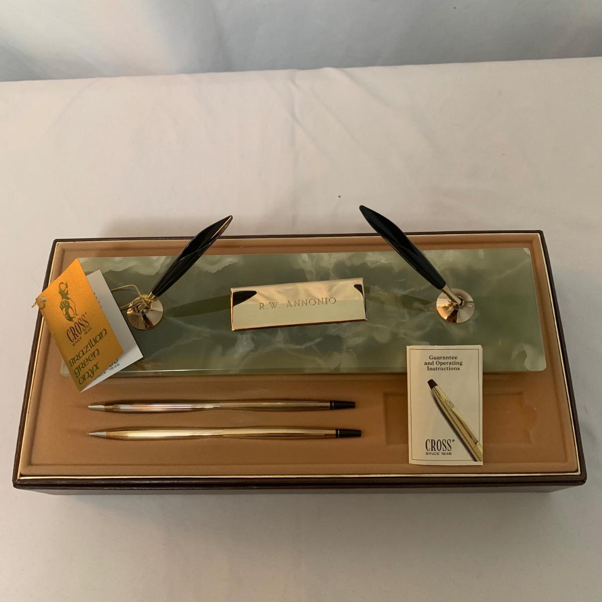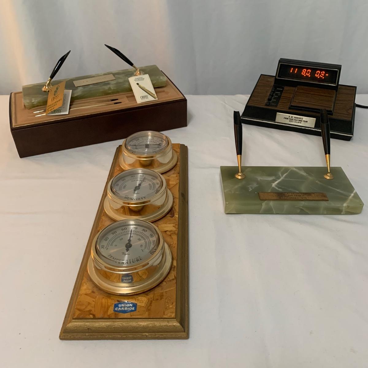 Vintage Office Gifts--Cross Pens, Stone Holders, Weather Station (O-KW)