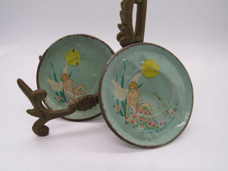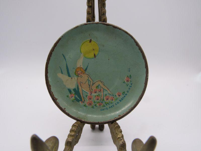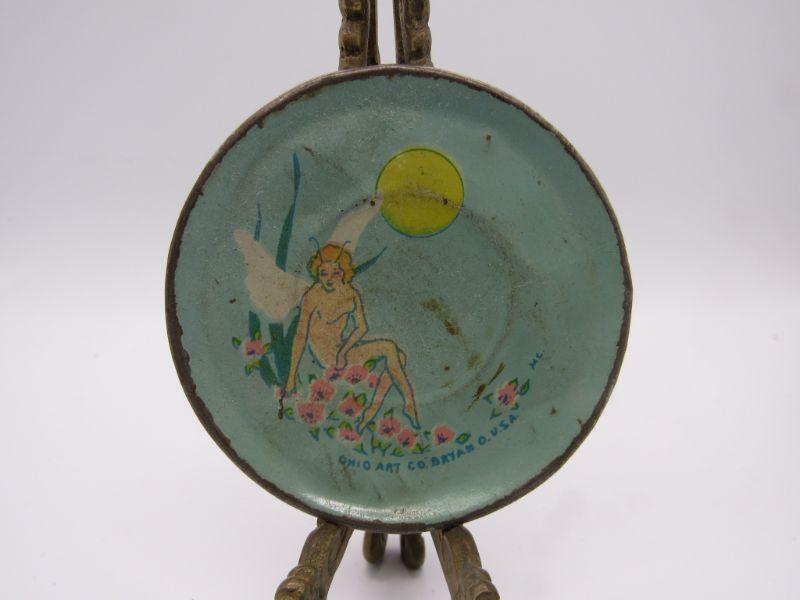 VINTAGE OHIO ART CO. TIN LITHO FAIRY TEA PARTY MINIATURE PLATES